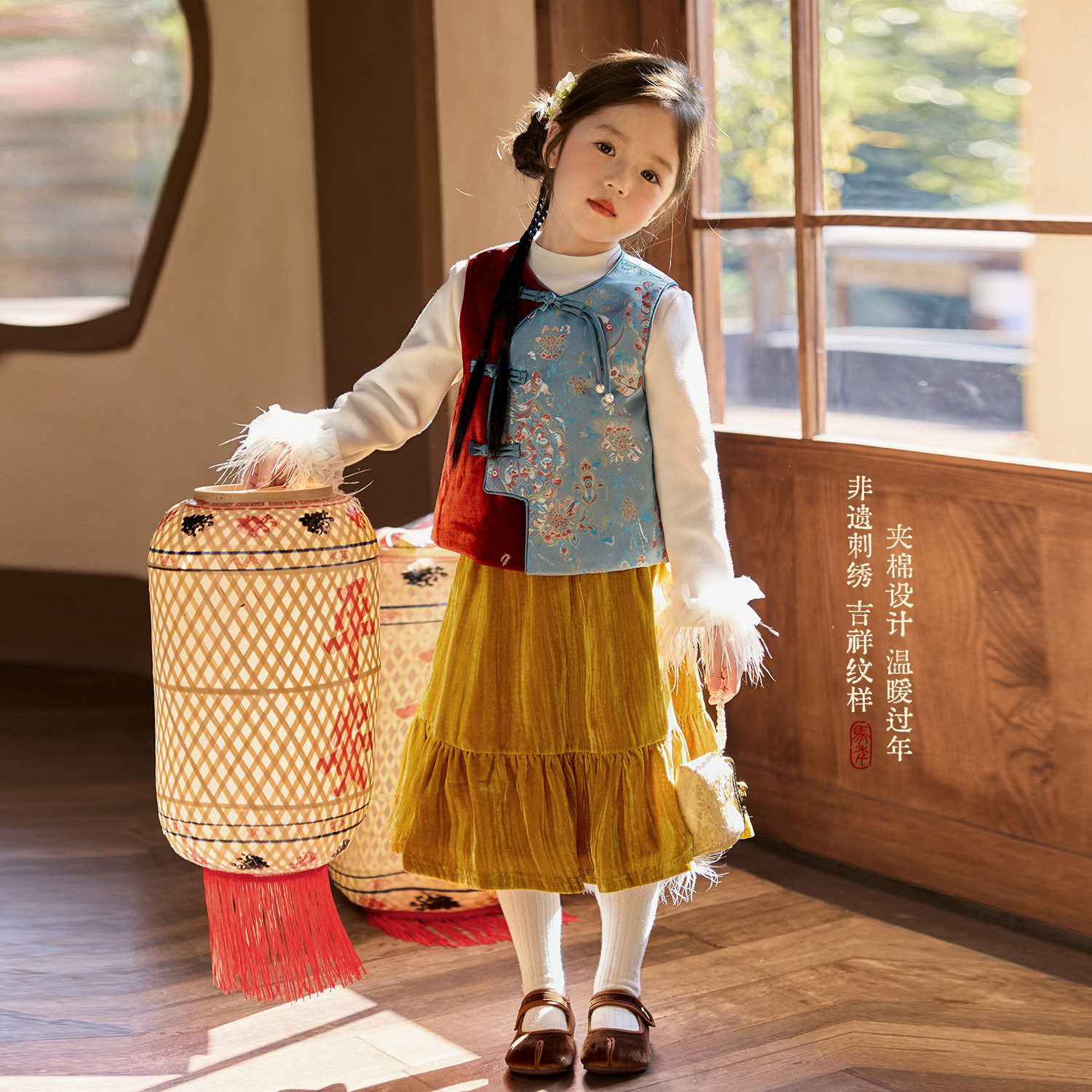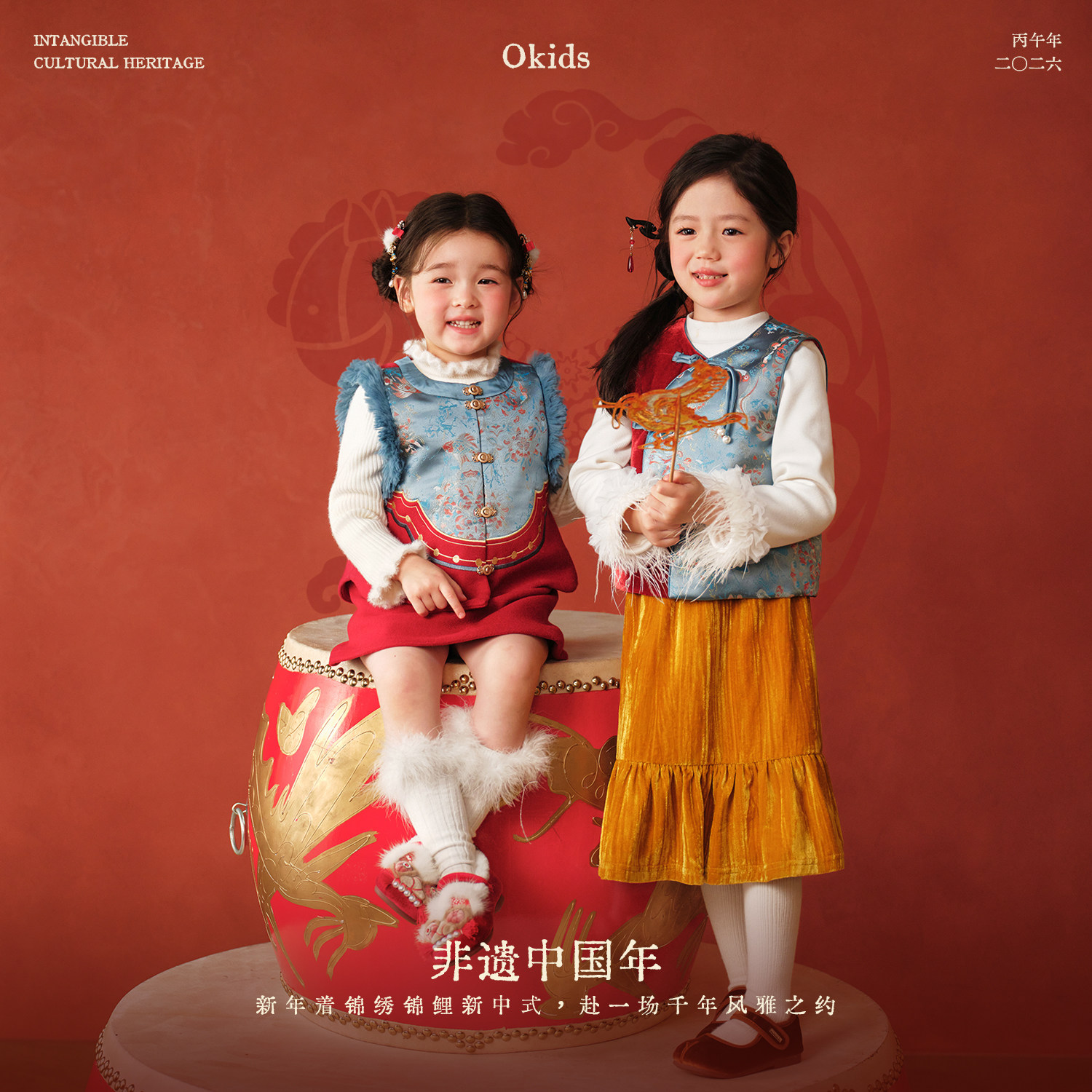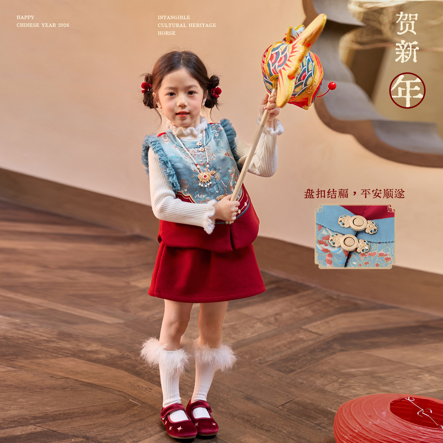 套装 宝宝新中式 小O宝童装 裙女新年2026冬女童国风拜年服 非遗
