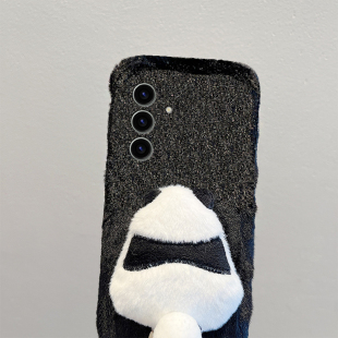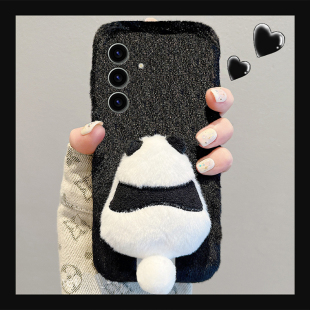 可爱熊猫尾巴适用三星s25edge手机壳s24plus挂绳s23 s10 note20卡通 十s22呆萌s21fe毛绒s20ultra秋冬季