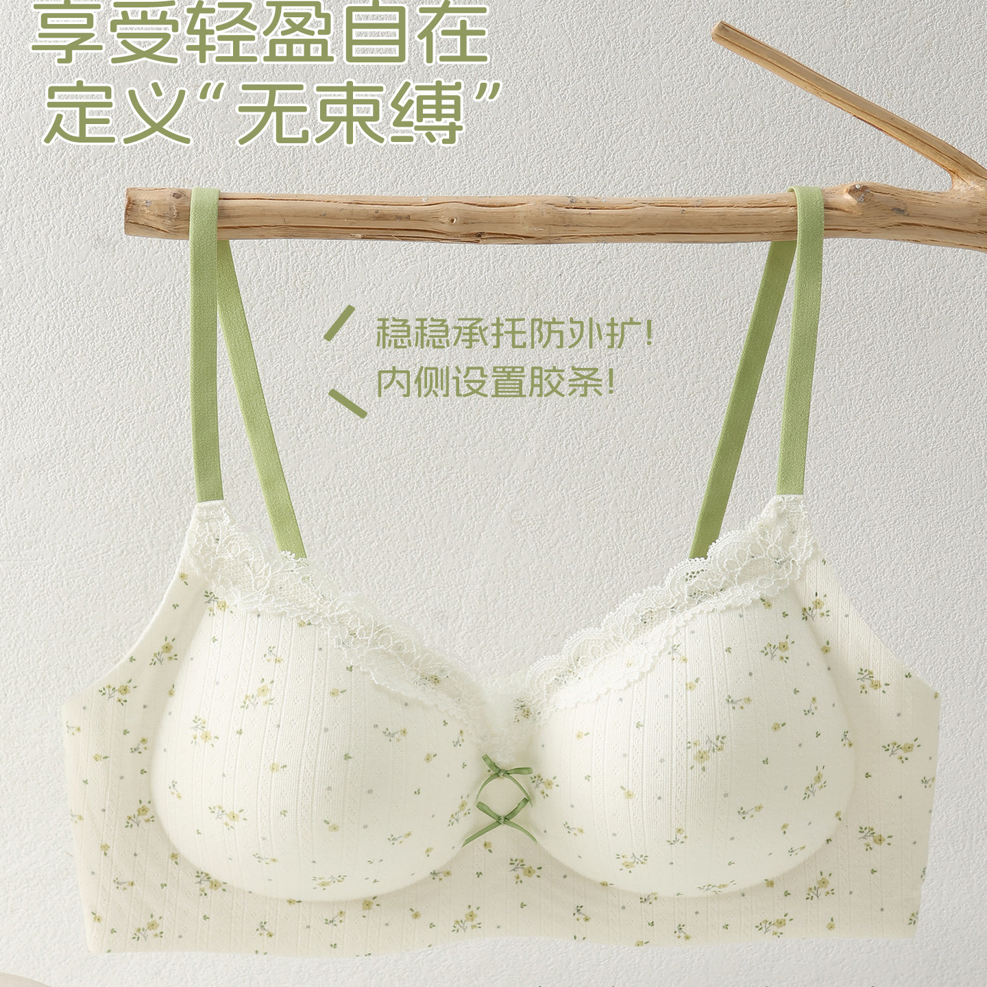 甜美撞色芭蕾风碎花蕾丝边无痕内衣薄款 小胸聚拢无钢圈防下垂文胸
