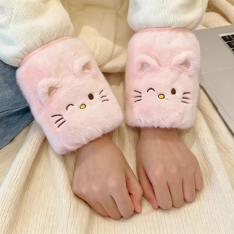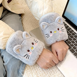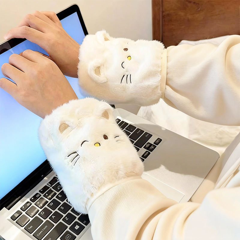 短款 秋冬毛绒猫咪防污袖 工作学习学生保暖套袖 羽绒服护袖 套女新款