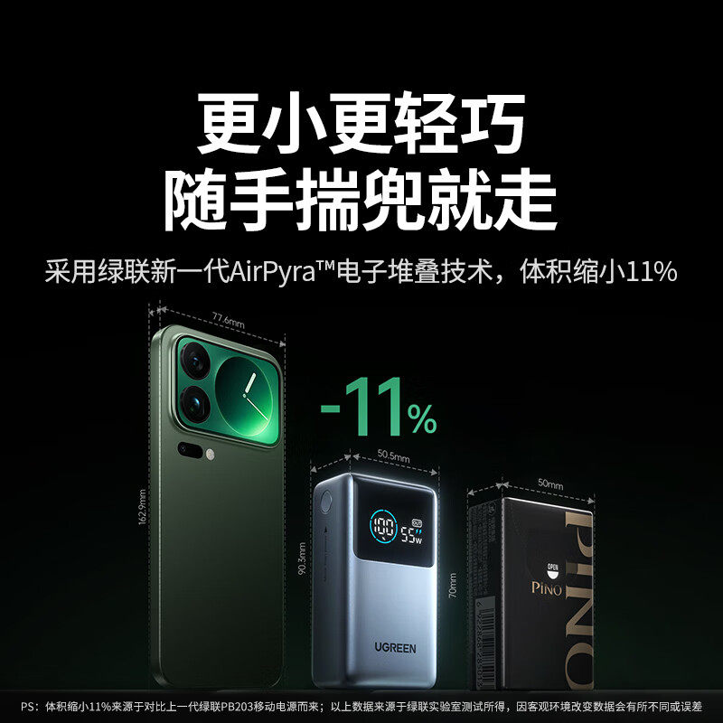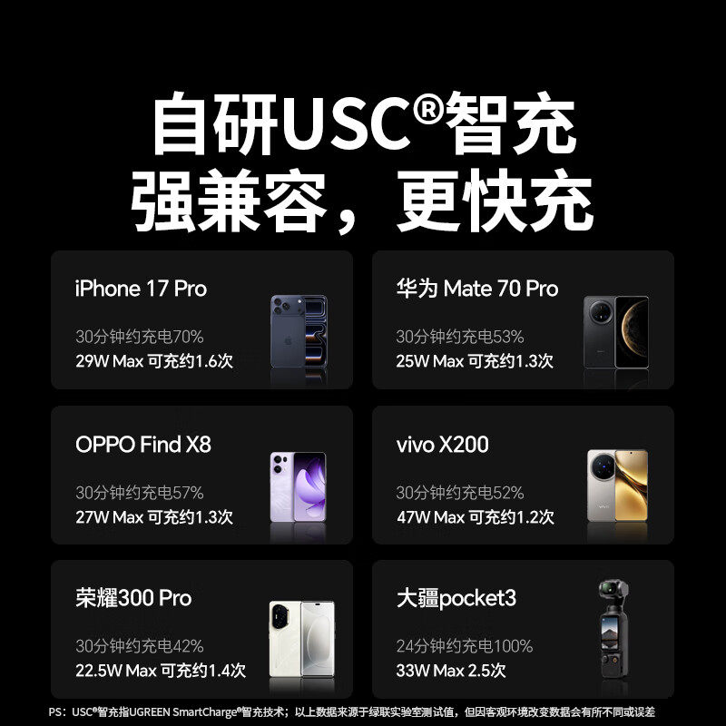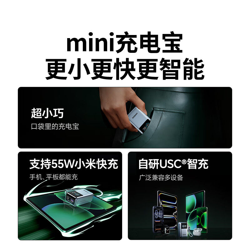绿联充电宝55W能量湃闪充10000毫安自带线mini便携移动电源适用苹果17华为小米手机iPad平板