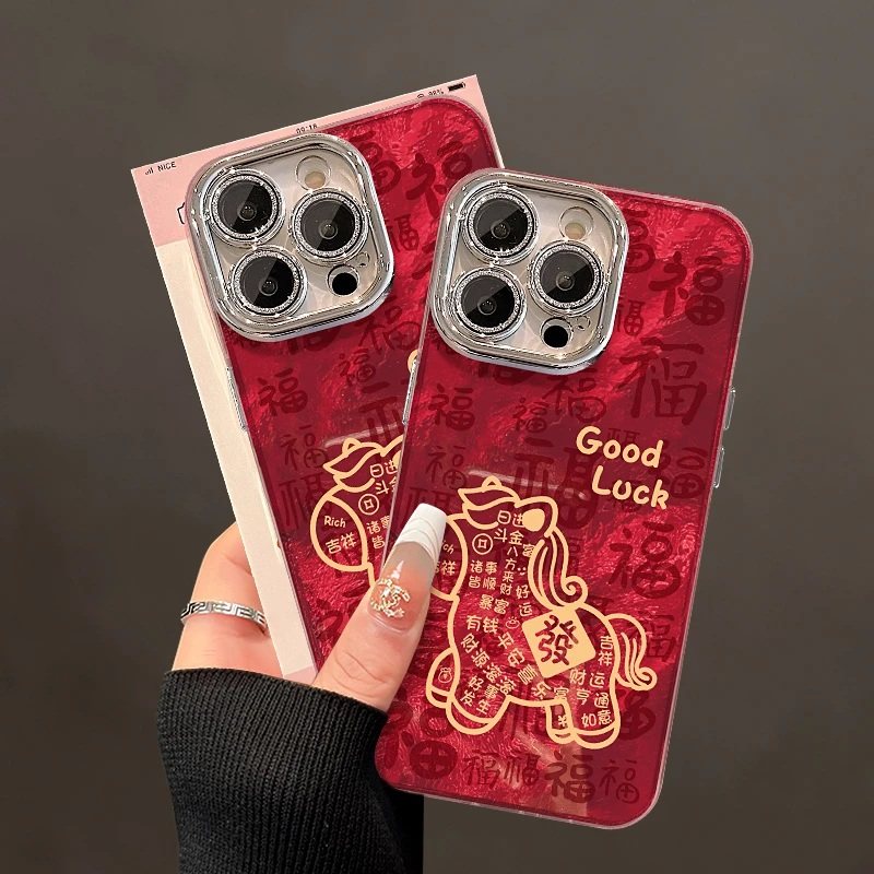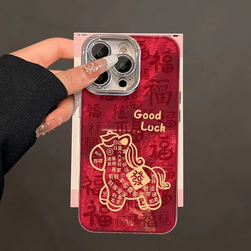 好运线条马适用苹果17ProMax精孔冰川纹壳华为Pura80硬荣耀400手链OPPOFindX9新年红vivoX300潮小米17红米K90