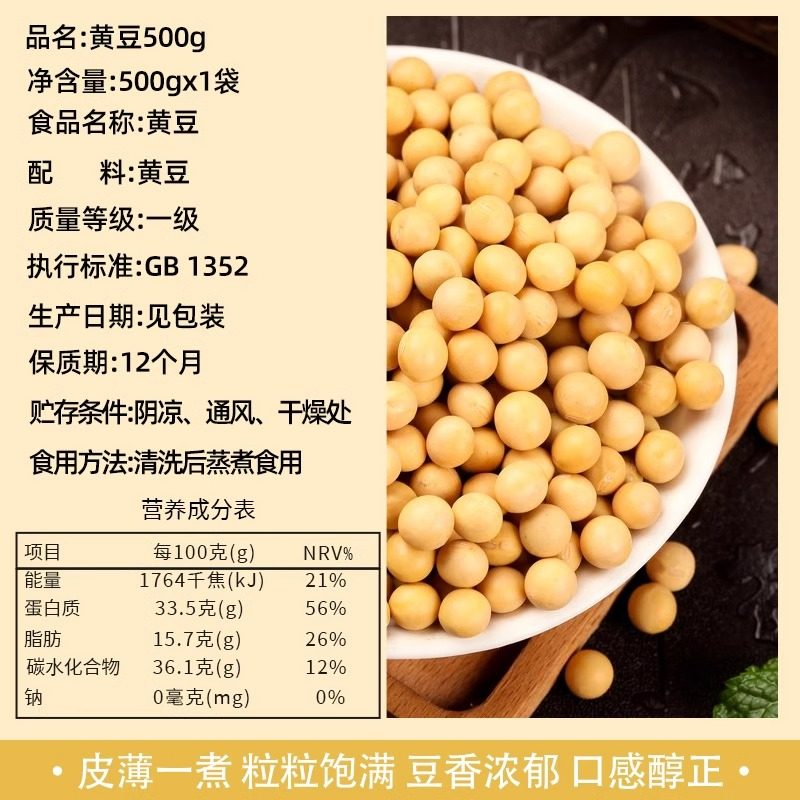 湖上粮仓东北黄豆500g新货非转基因农家自种打豆浆大豆五谷杂粮