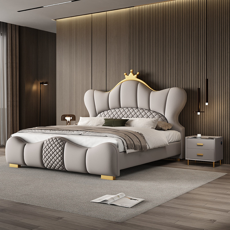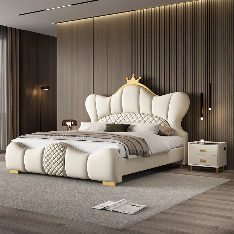 法莎蒂奶油风真皮床主卧轻奢现代简约网红仙女床皮艺软包婚床