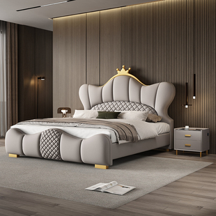 泡芙床真皮床双人床主卧室现代简约软包结婚床高端大气新款 皮艺床