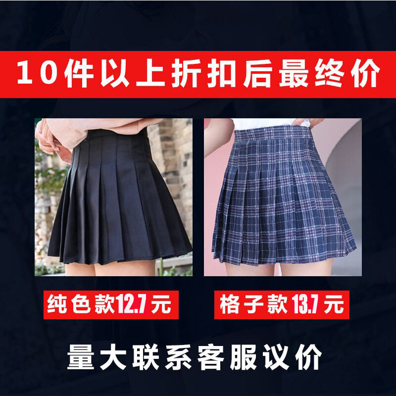 高腰短裙百搭大码 韩版 格子半身裙 jk白色a字裙新款 百褶裙女春夏季