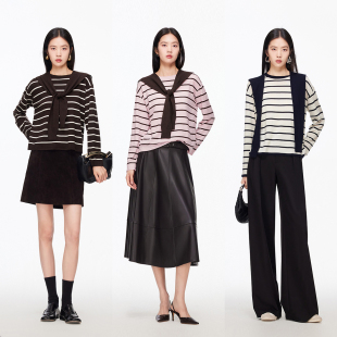含绵羊毛桑蚕丝系带条纹毛衣326124023 女26春新款 Vero Moda针织衫