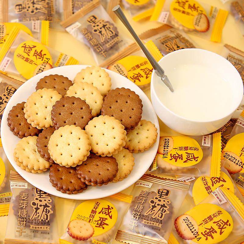 正宗咸蛋黄麦芽饼黑糖麦芽夹心饼干小圆饼干单独小包装 零