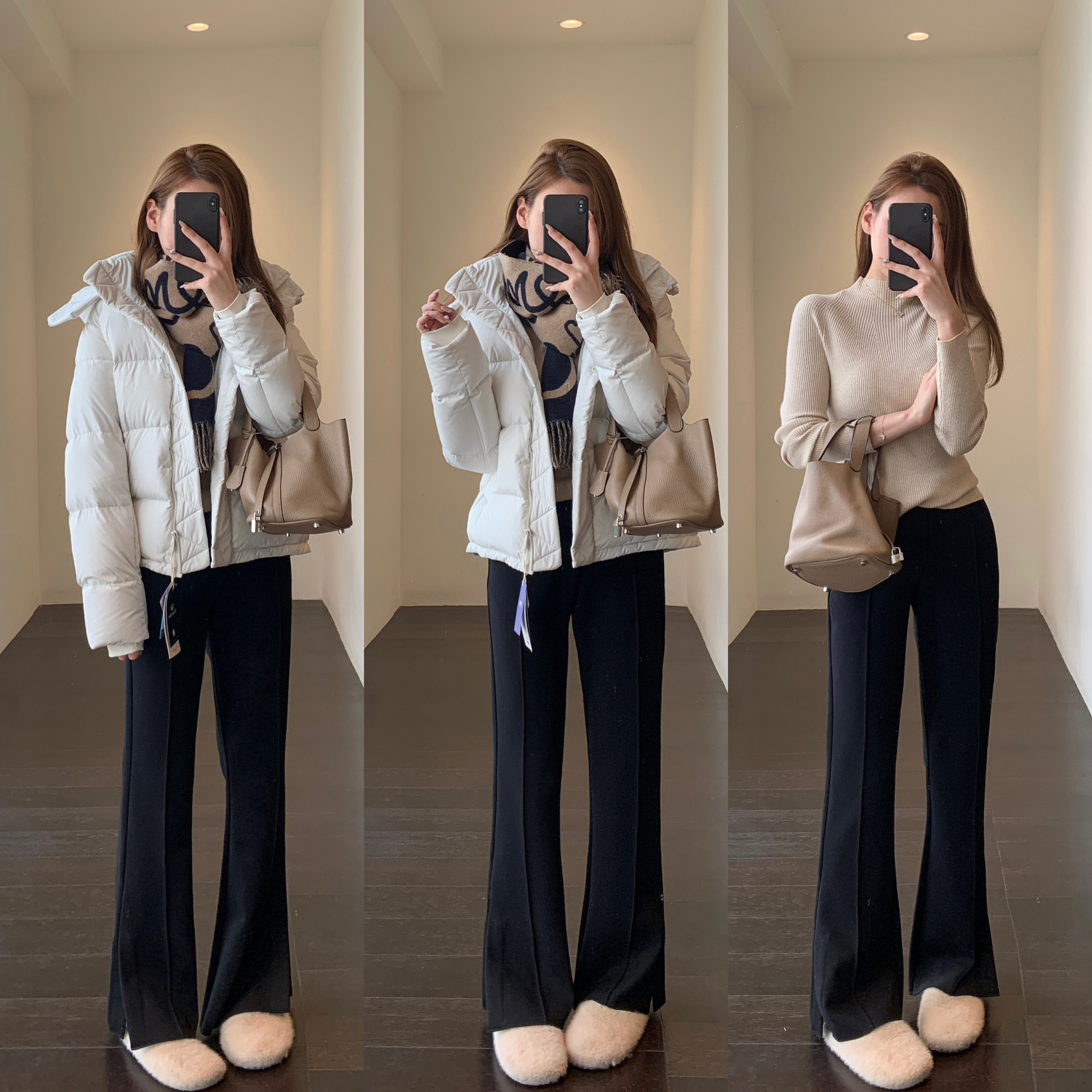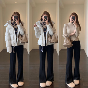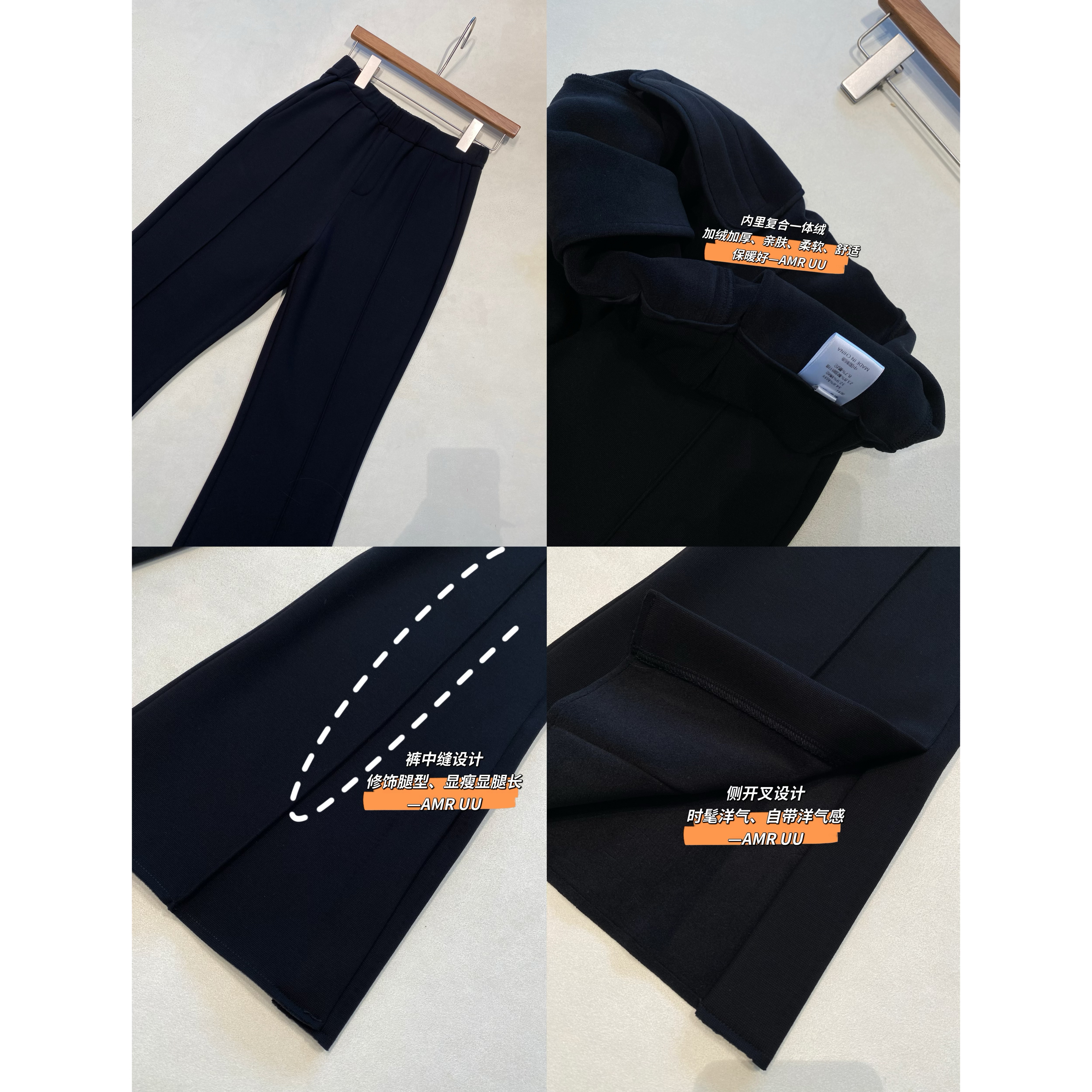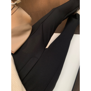 冬季 时髦开叉裤 女2025新款 高腰黑色加绒微喇开衩马蹄裤 AMR