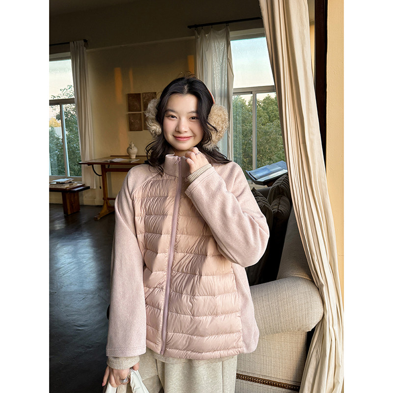轻量有型插肩袖 拼接90白鹅绒立领拉链排骨轻薄内胆羽绒服安妮森林