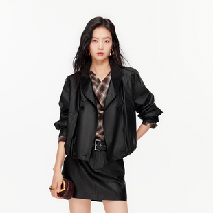 皮毛一体夹克外套短款 黑色修身 上衣女 原创设计秋冬新款 7Shiftin
