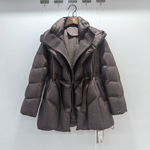 休闲连帽翻领抽绳系带中长保暖鹅绒服外套 2025女款 DDF DY3917冬装