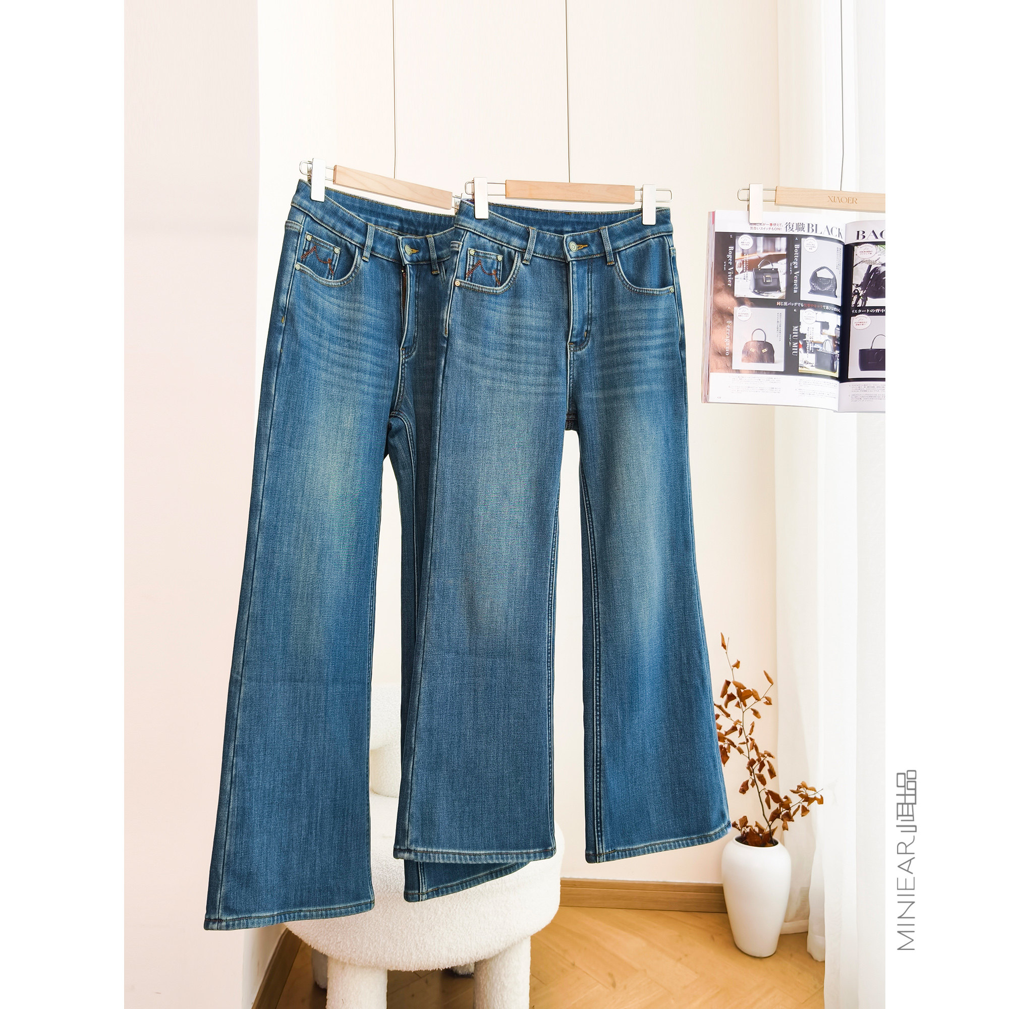 子 加厚宽松高级感直筒长裤 超火米白色阔腿加绒牛仔裤 女士2025冬季