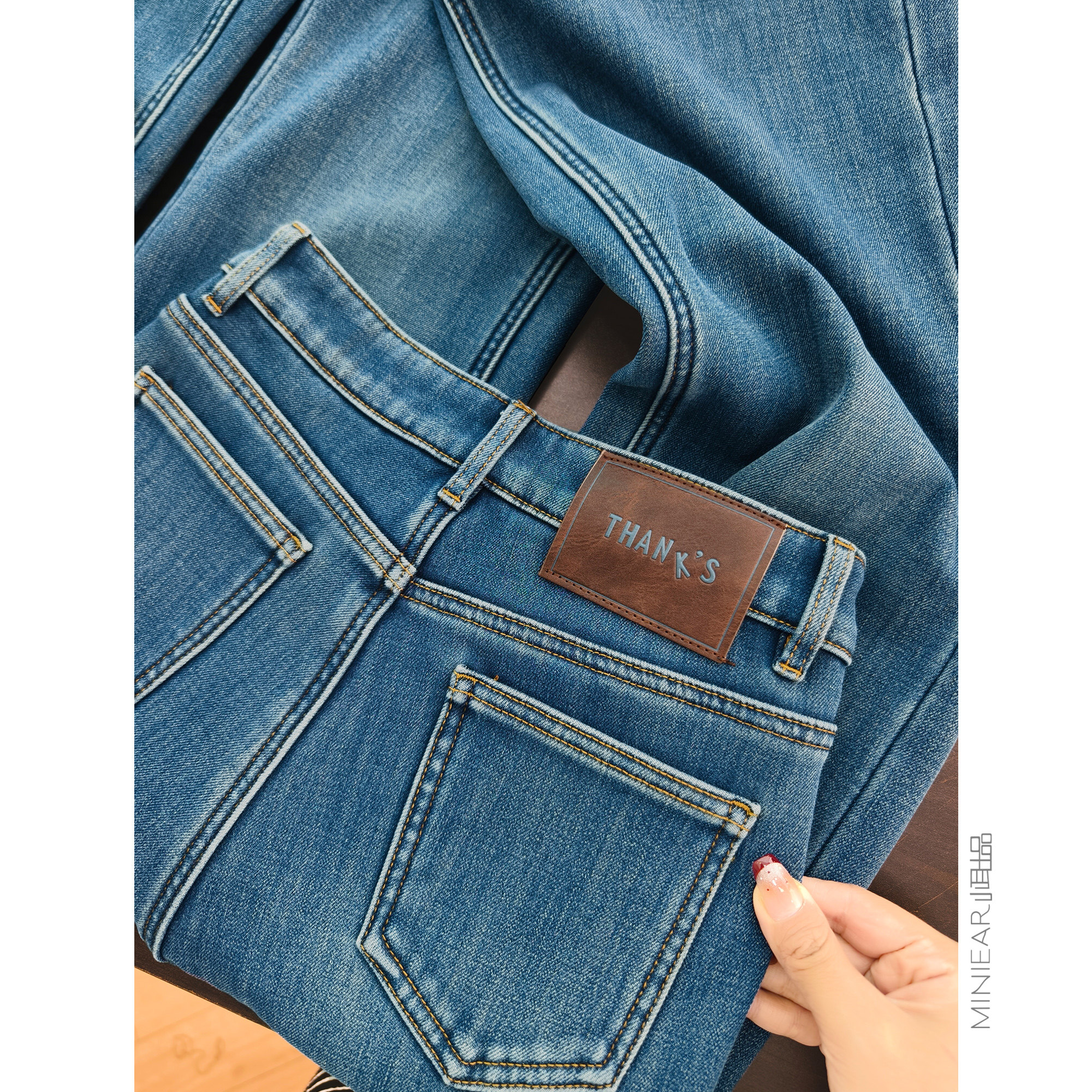 显瘦紧身小脚裤 版 女冬季 深蓝色高腰双排扣加厚薄绒牛仔裤 型超赞