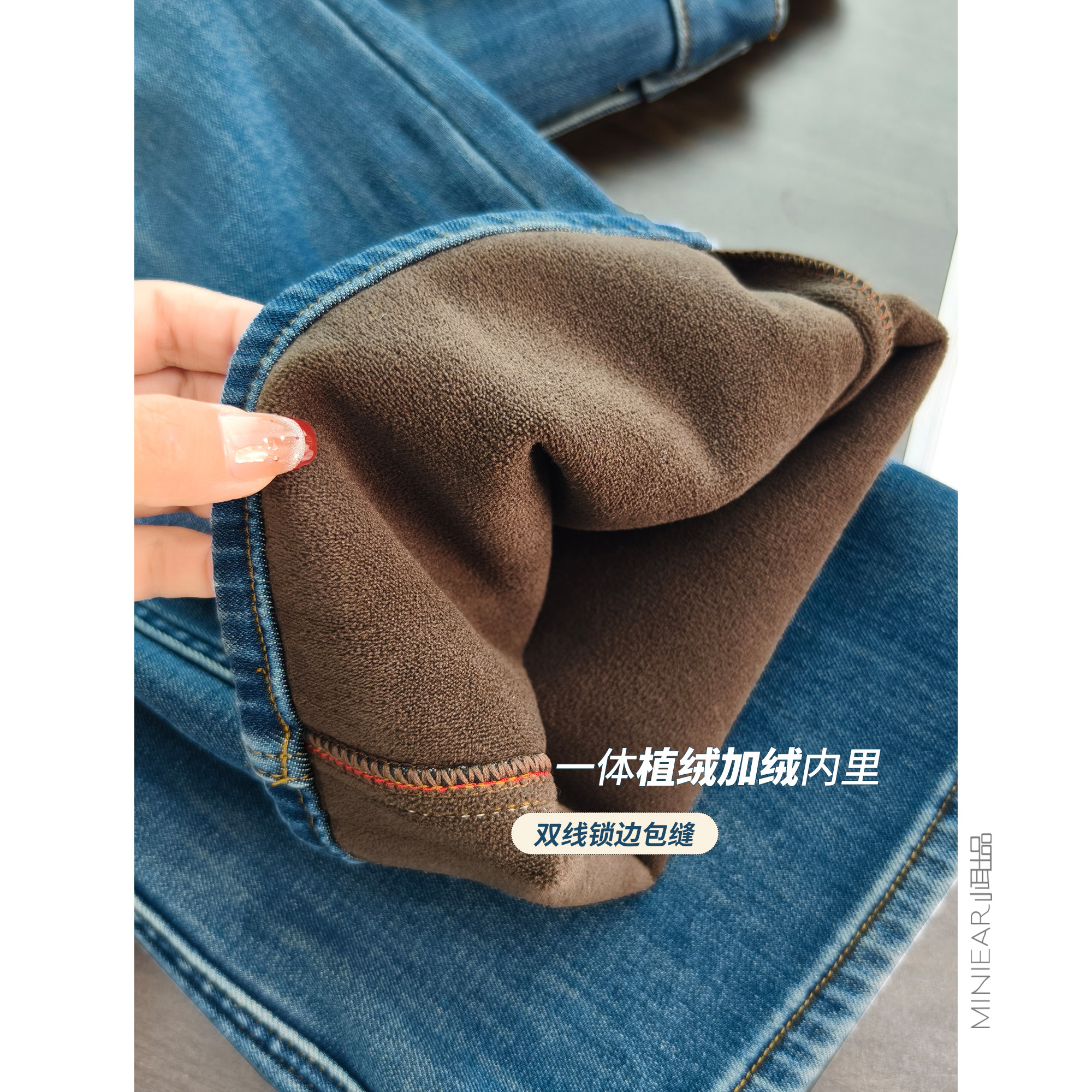 复古浅色裤 宽松长裤 子加绒牛仔裤 加厚保暖直筒裤 女冬季 tingtings