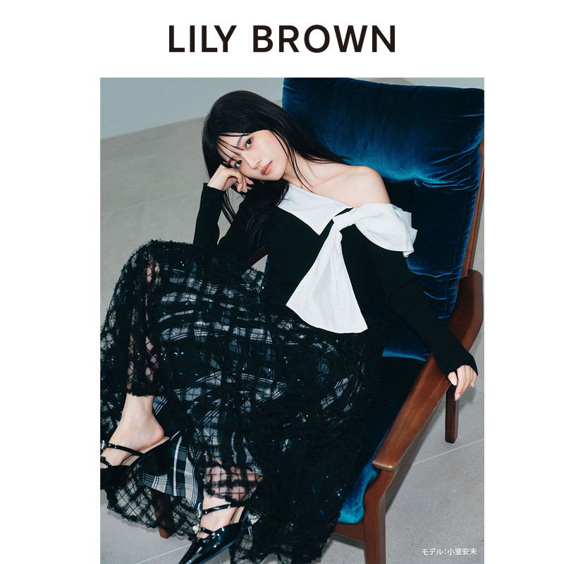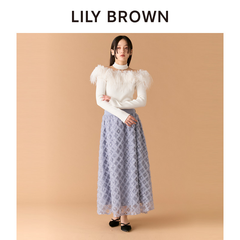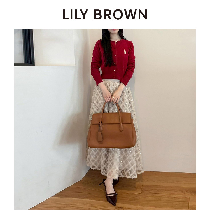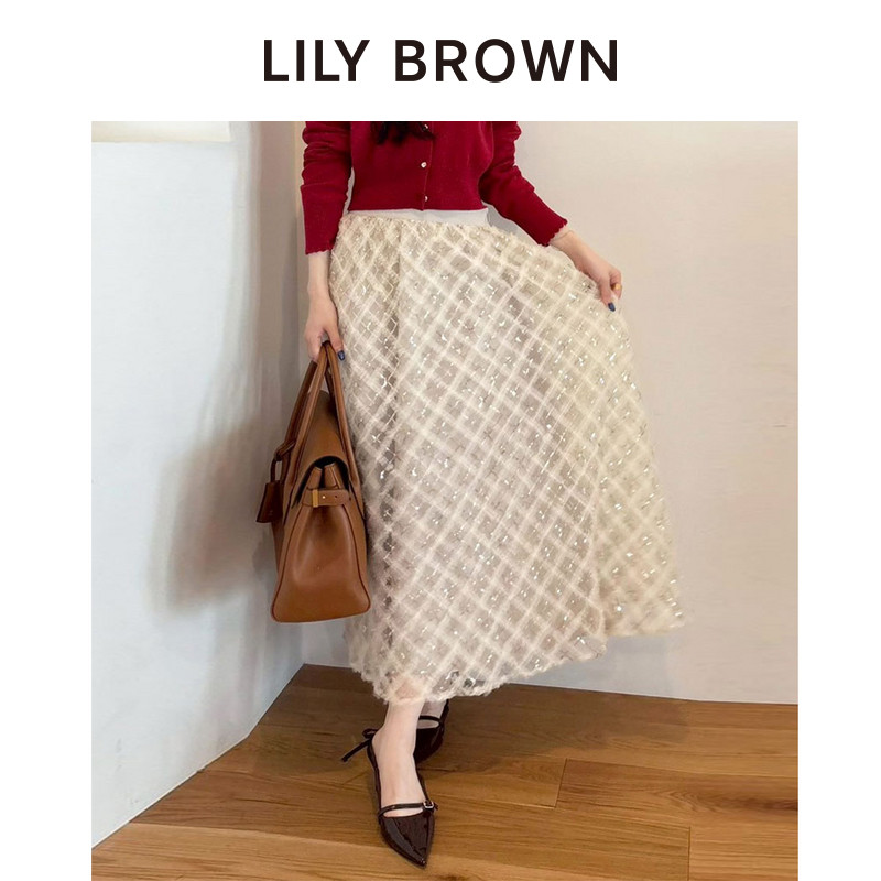 LILY 优雅高腰薄纱亮片格纹半身裙LWFS255045 BROWN秋冬款
