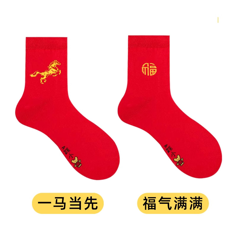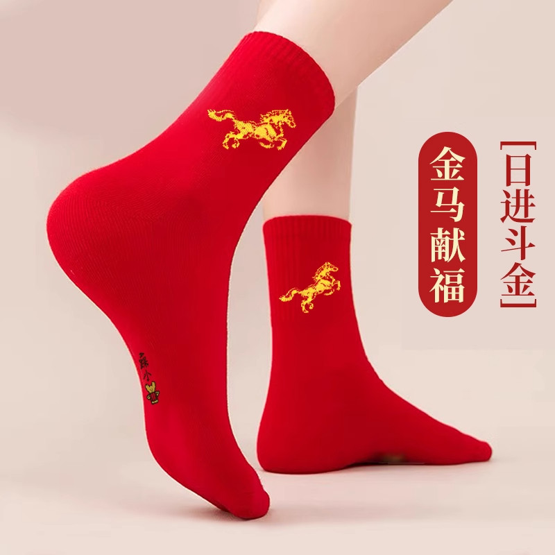 2026本命年红袜子男女生肖袜大红中筒纯棉袜红色马年袜防臭不掉色