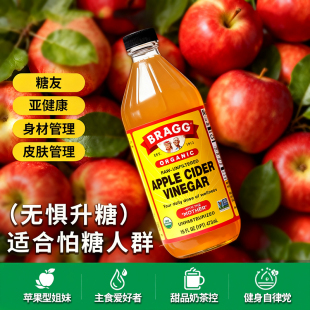 美国Bragg原装 进口纯天然苹果醋无糖饮料浓缩原浆0糖0脂0卡0热量