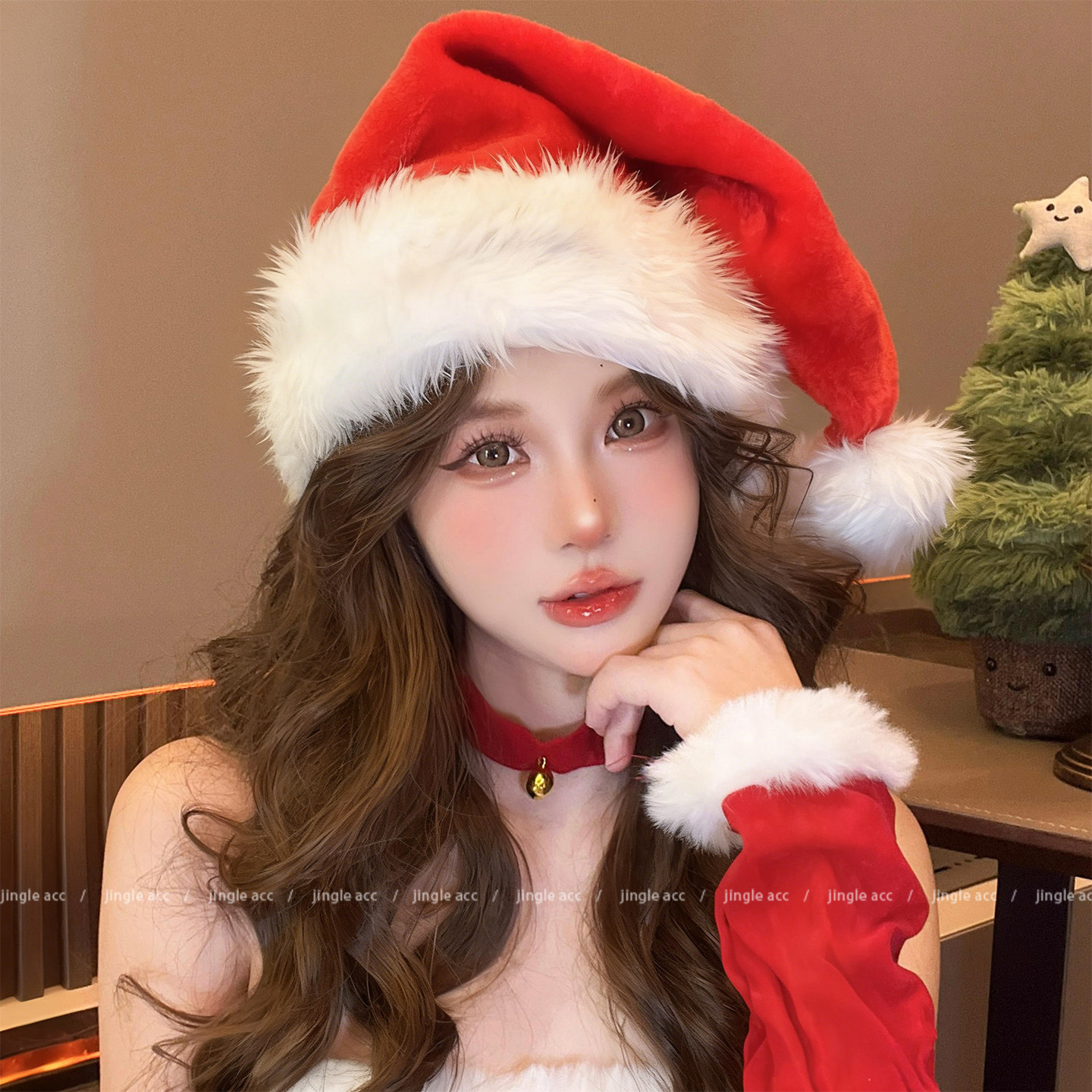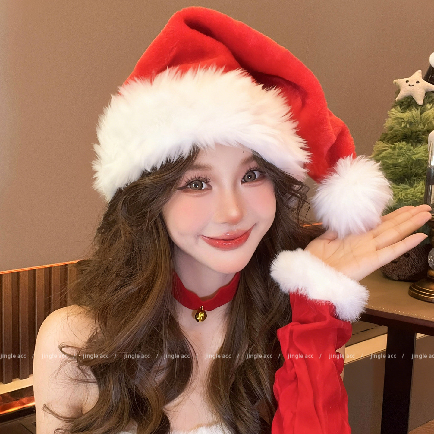 圣诞节装 饰毛绒圣诞帽成人圣诞老人帽子圣诞节小礼物拍照道具配饰