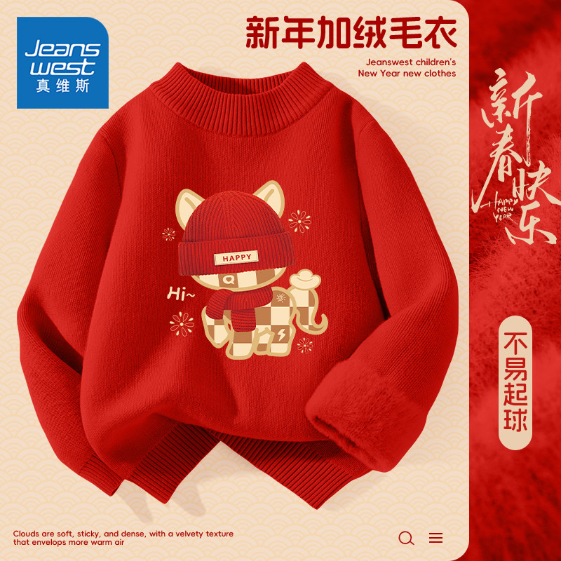 男款 GV真维斯黑色毛衣男冬季 保暖内搭针织衫 打底衫 加绒圆领男士