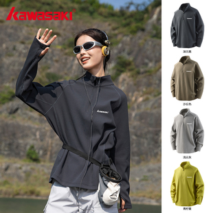 Kawasaki川崎正品 上衣轻量化灰色外套秋 防泼水冲锋衣速干防晒长袖