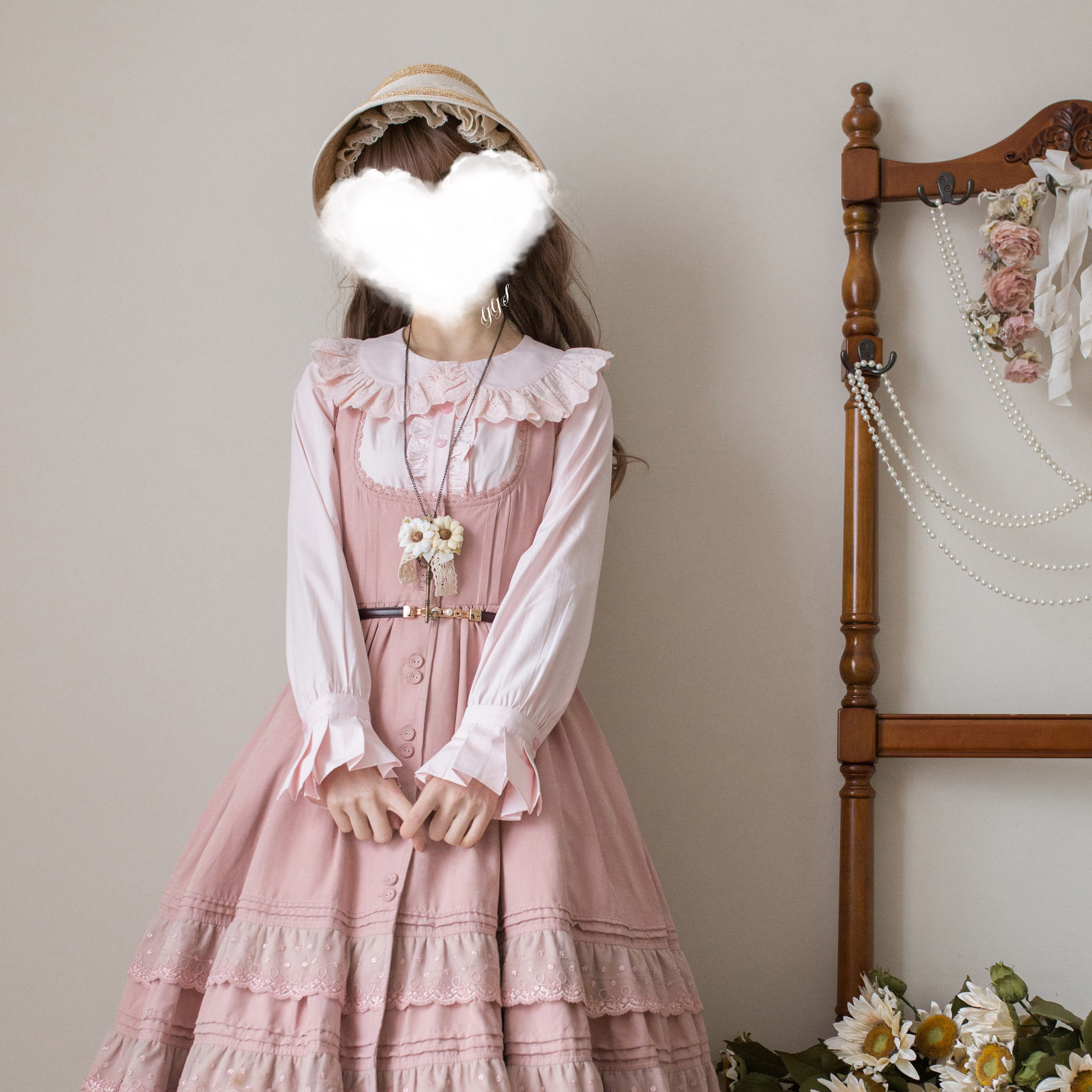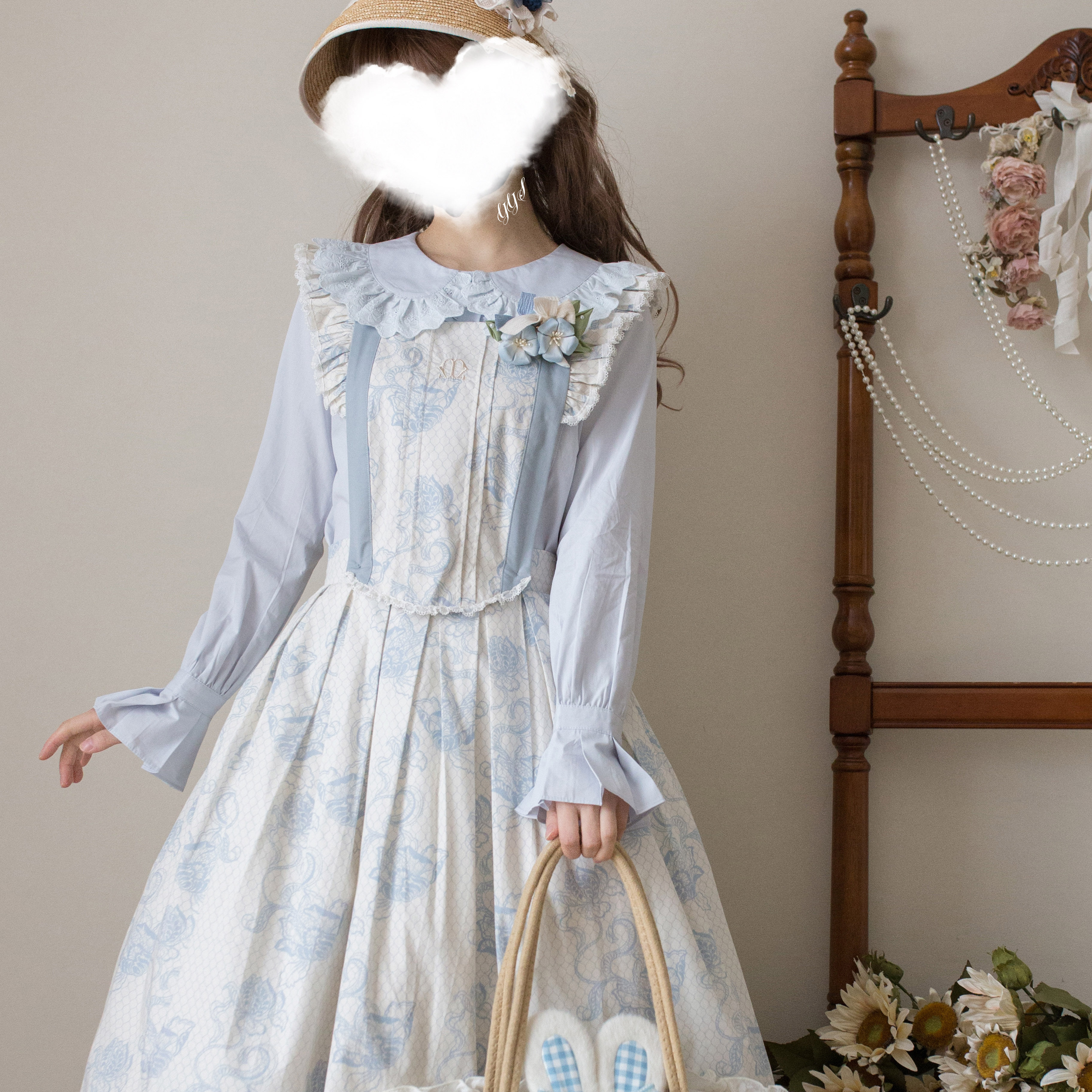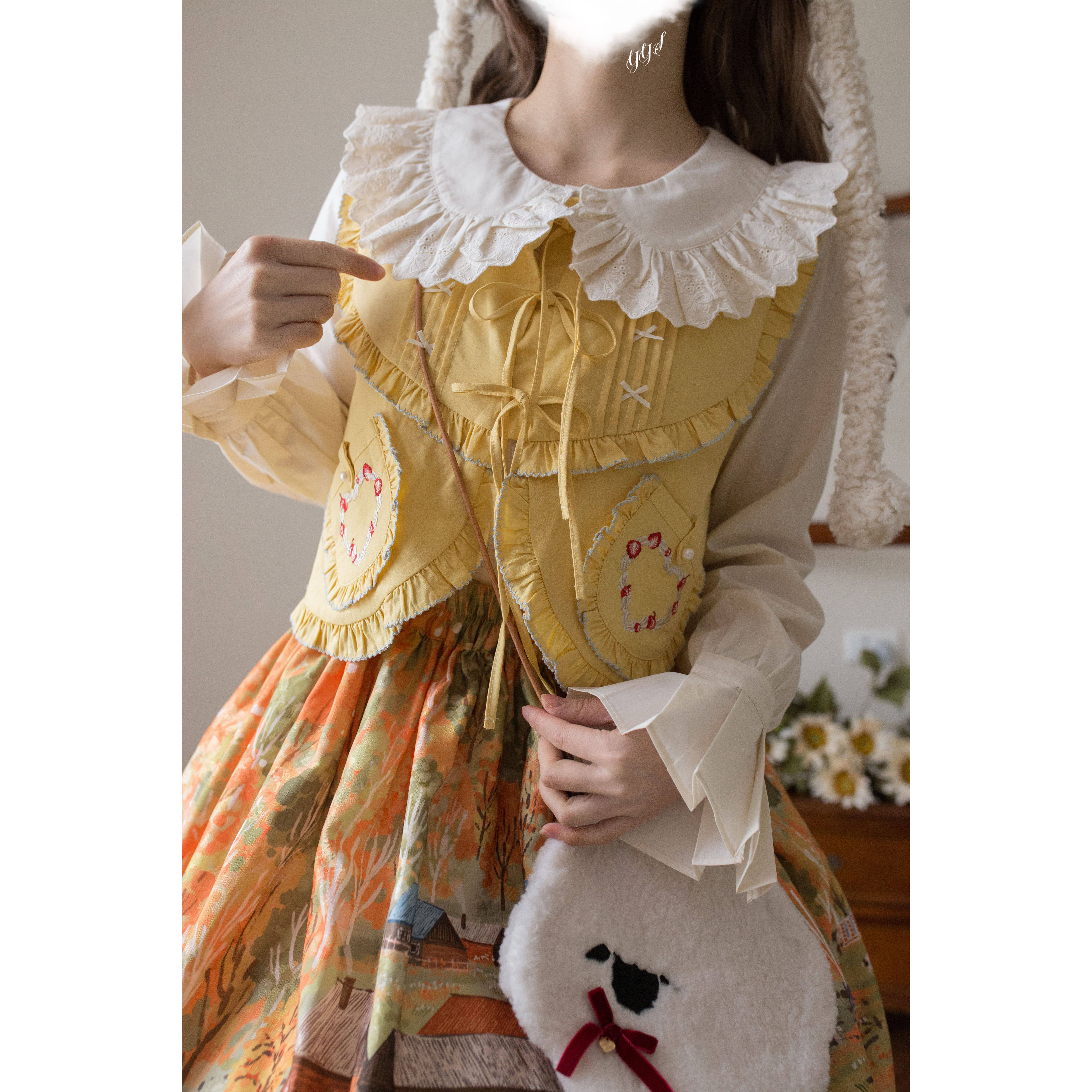 Lolita内搭双层泡泡袖 衬衫 长袖 娃娃领中古蕾丝可爱洛丽塔 基础款