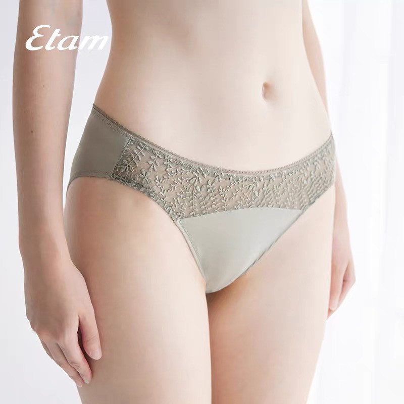 W322DI0205 棉内档透气舒适三角裤 Etam蕾丝刺绣中腰内裤 女性感薄款