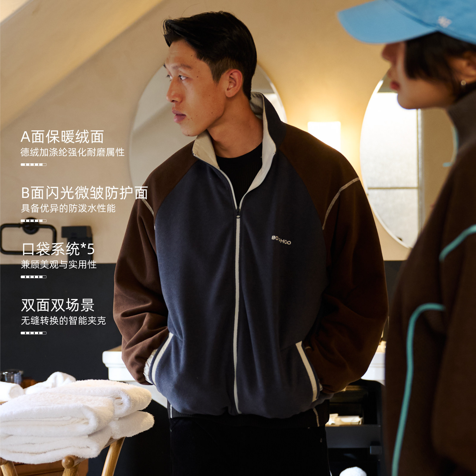 班尼路冲锋衣内胆男款 浅色抓绒衣摇粒绒夹克男A 外套秋冬立领开衫