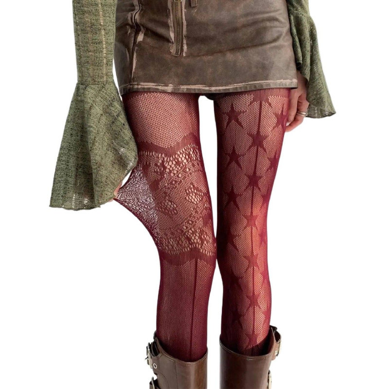 高弹复古花纹朋克辣妹连裤 网红渔网袜大码 袜 春夏新品 破洞丝袜个性