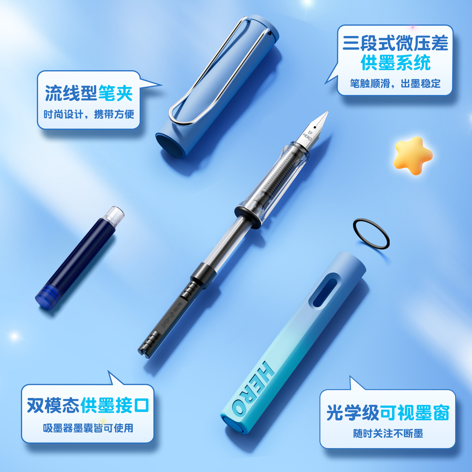 六品堂钢笔学生专用正姿钢笔三年级小学生儿童热敏可擦钢笔女生硬笔练字墨囊可替换0.38可换墨囊钢笔初学者用