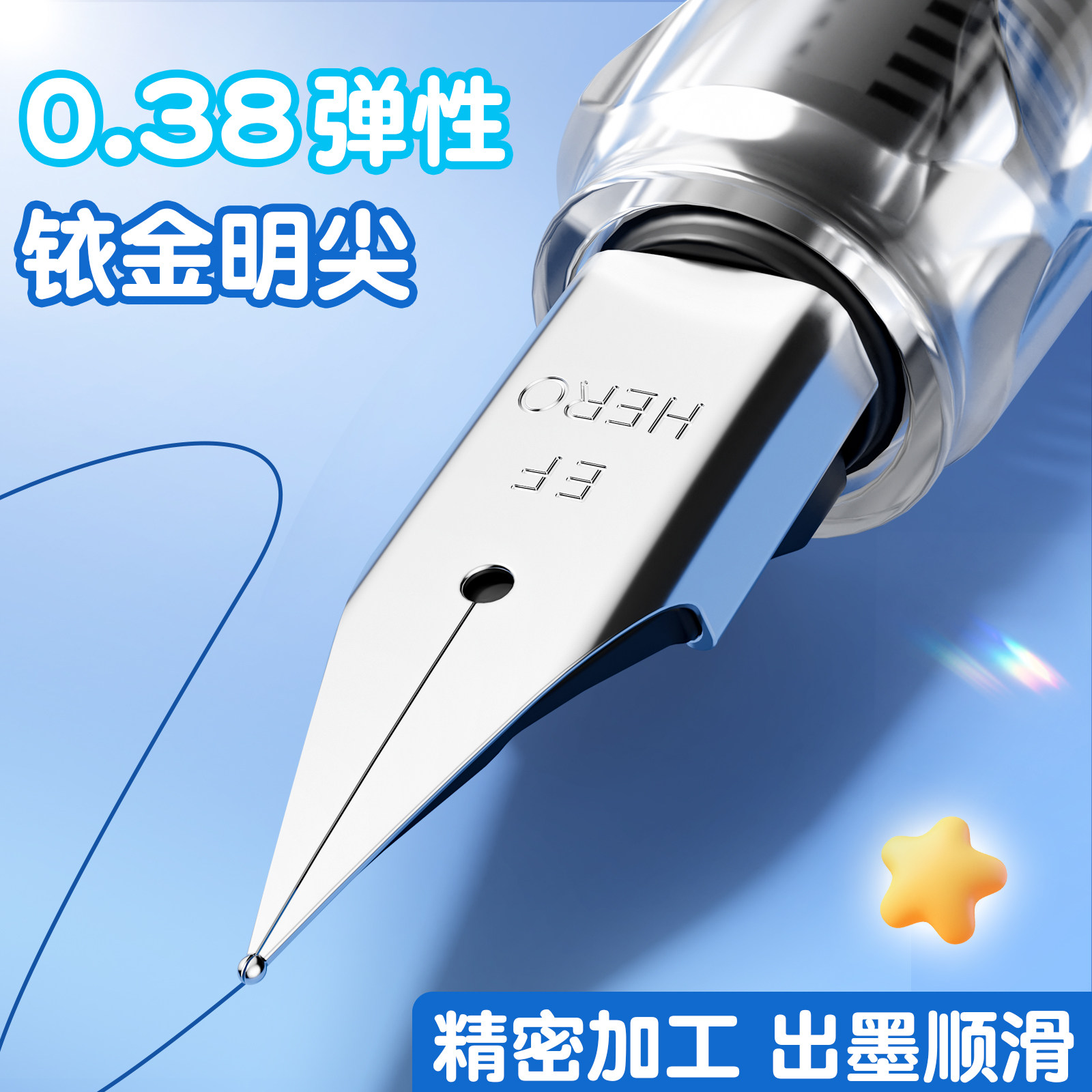 永生3080热可擦钢笔易堵笔送润笔器免费刻字小学生三年级专用热敏可擦暗尖特细0.38可擦蓝晶蓝学生用