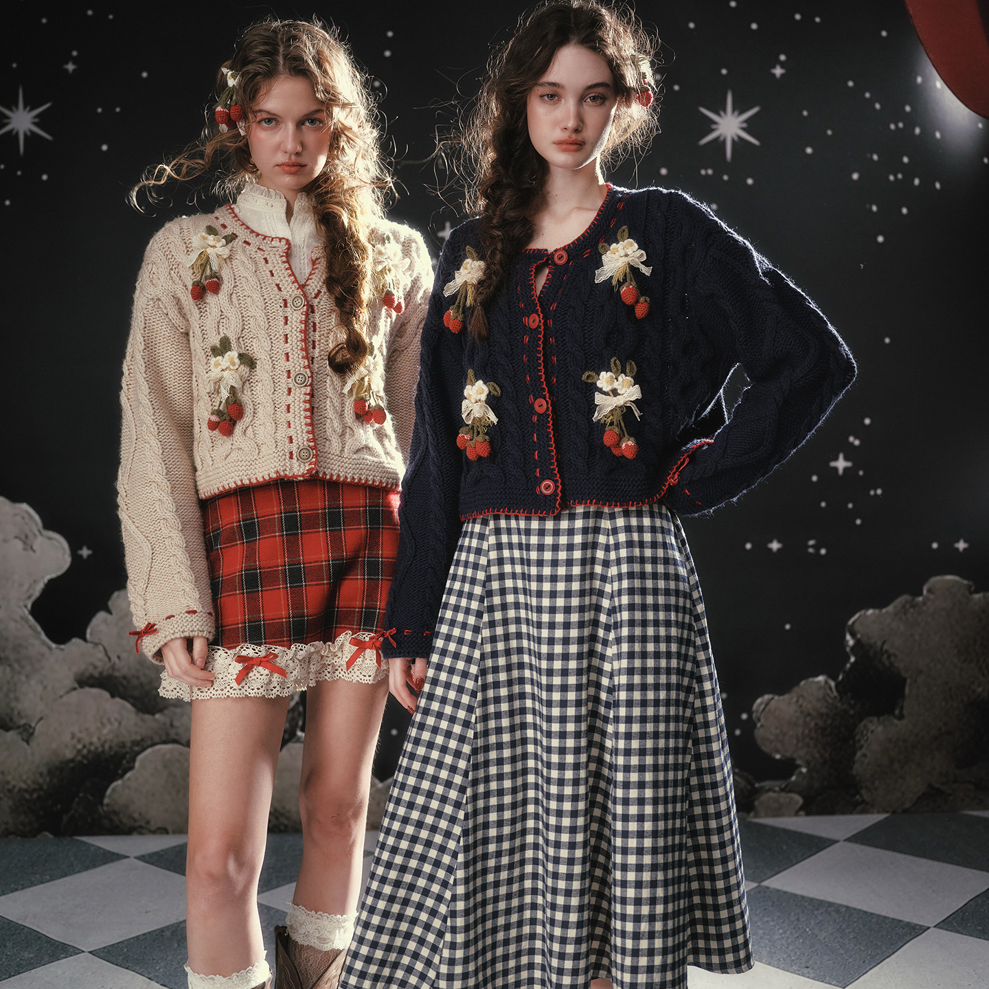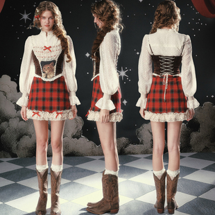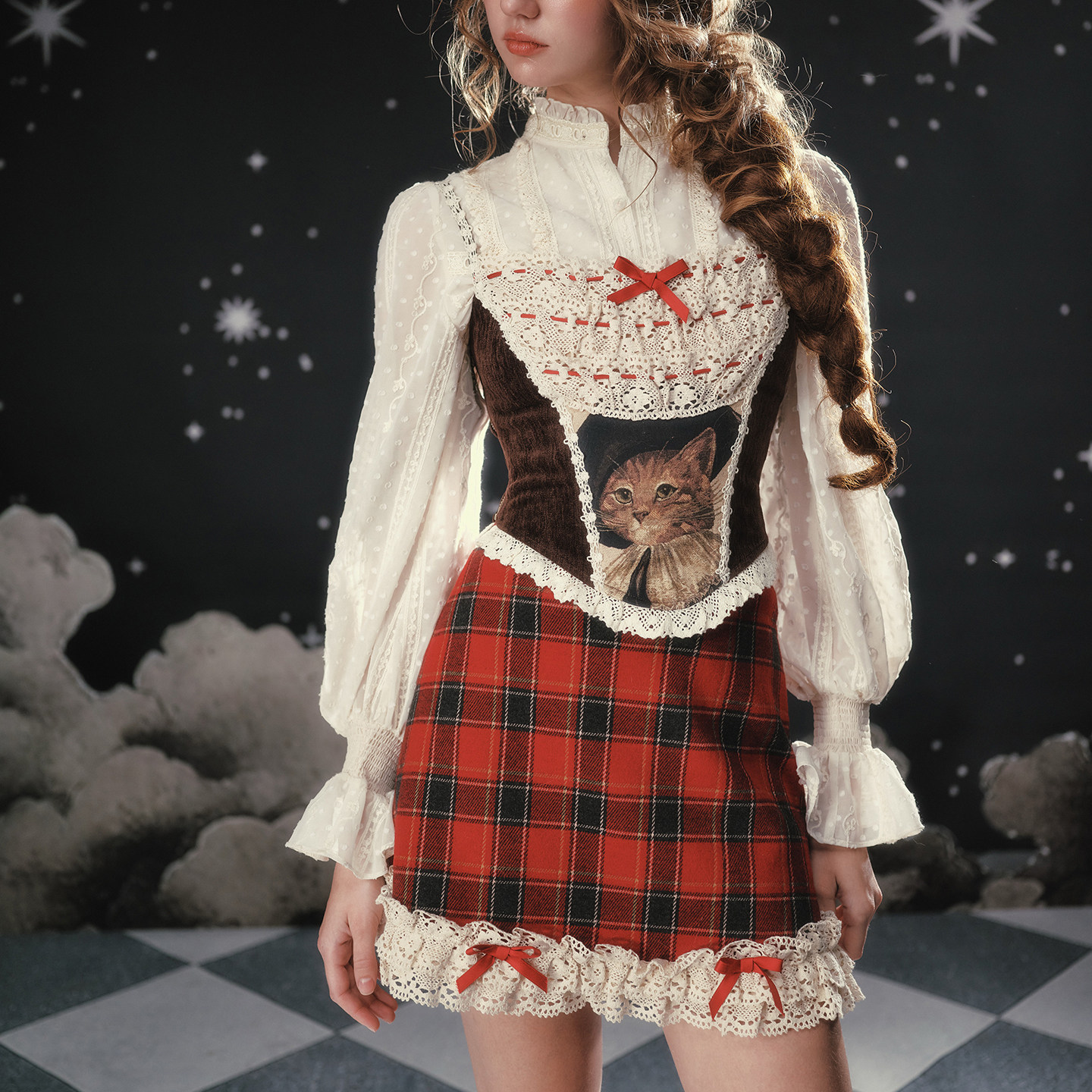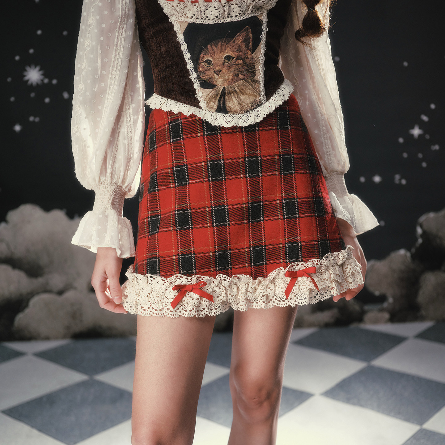 木偶猫 甜辣鱼骨胸衣格纹半裙套装 圣诞夜 圣诞套装 法式 LaceMade