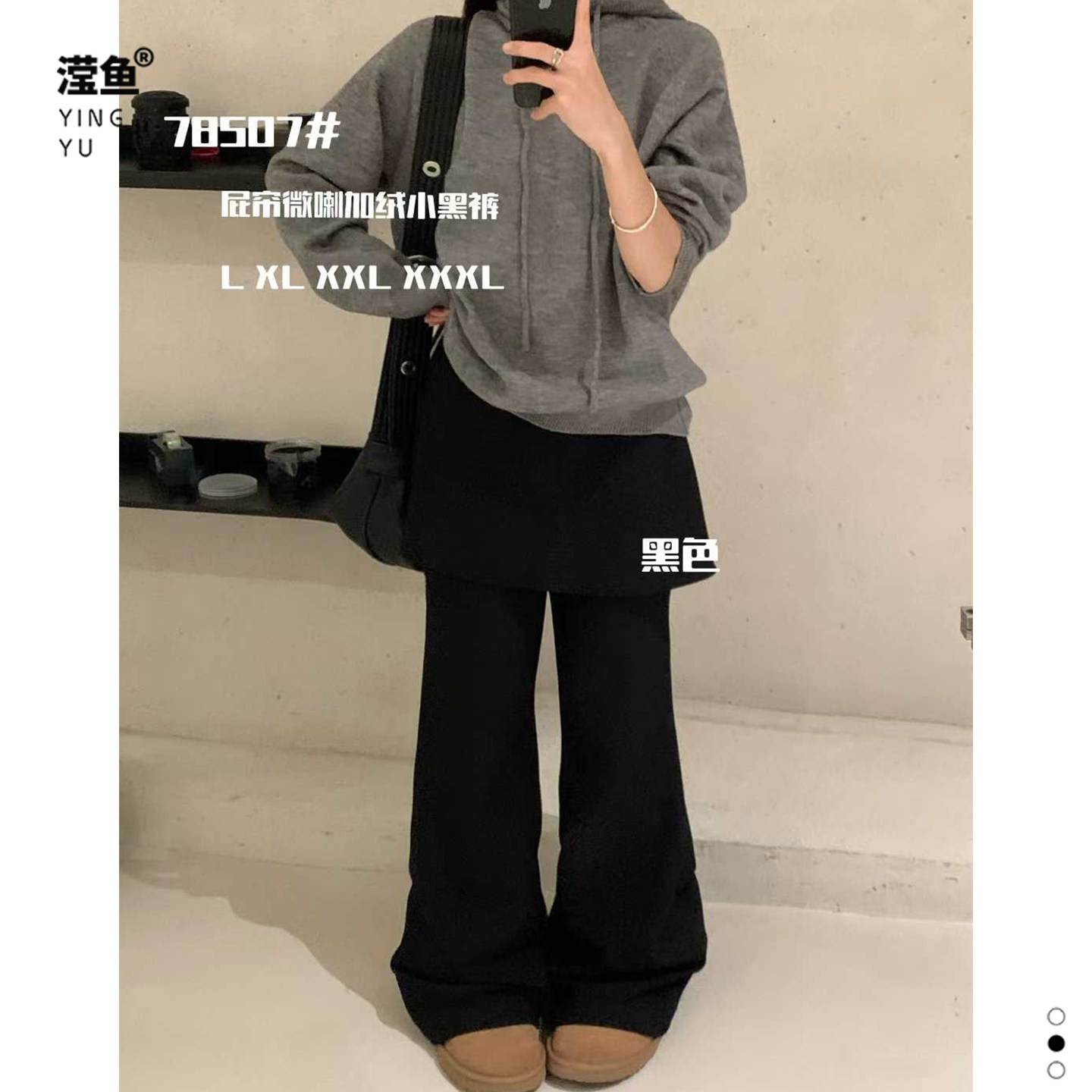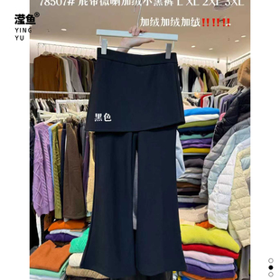 宽松显瘦百搭遮肉休闲裤 韩系气质黑色屁帘微喇裤 78507大码 大7