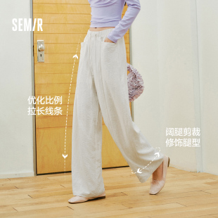 女春季 显瘦舒芙裤 花边裤 2026新款 子肌理垂感宽松阔腿裤 森马休闲裤