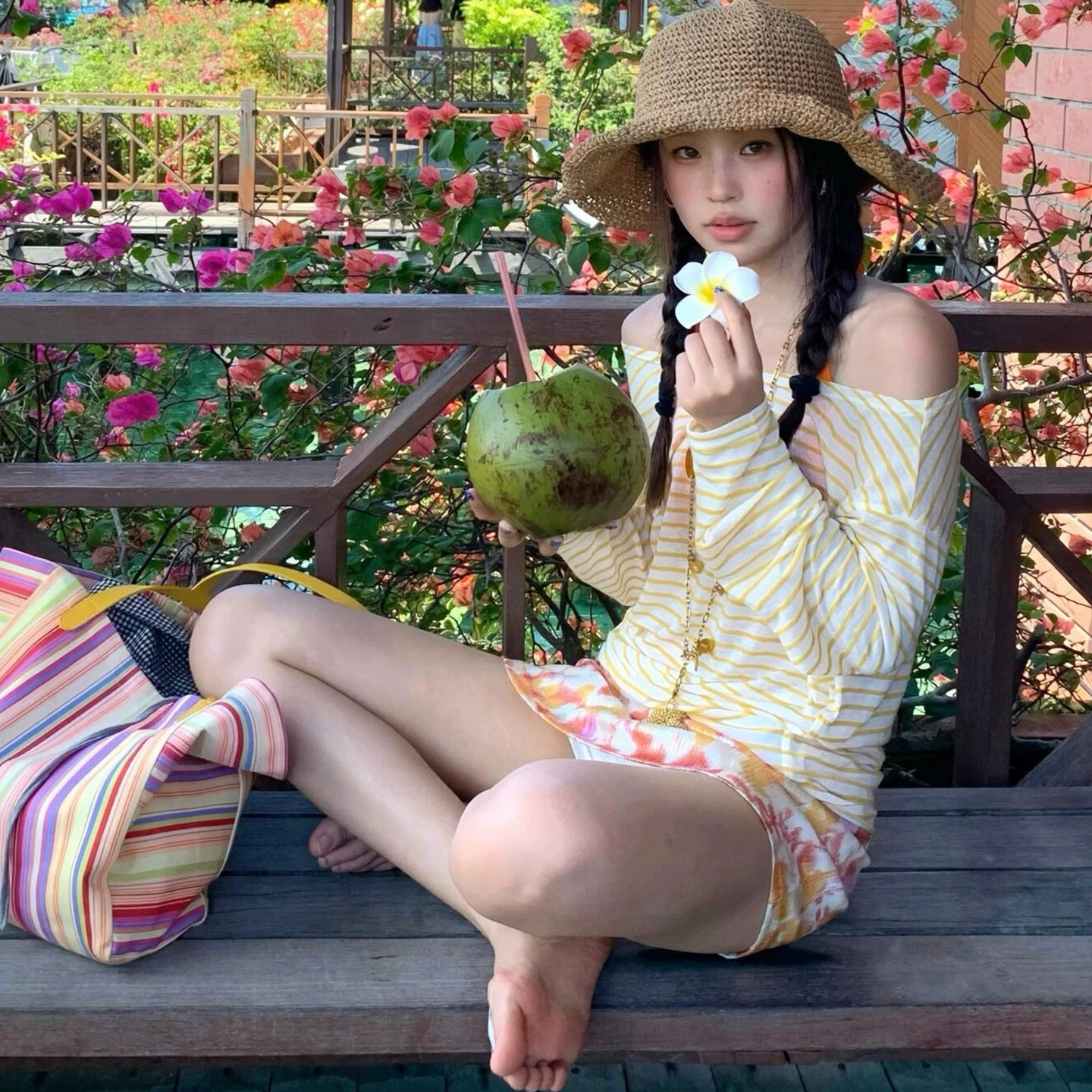 AYSTUDIO2025新款 比基尼性感纯欲风黑白条纹度假泡温泉分体泳衣女