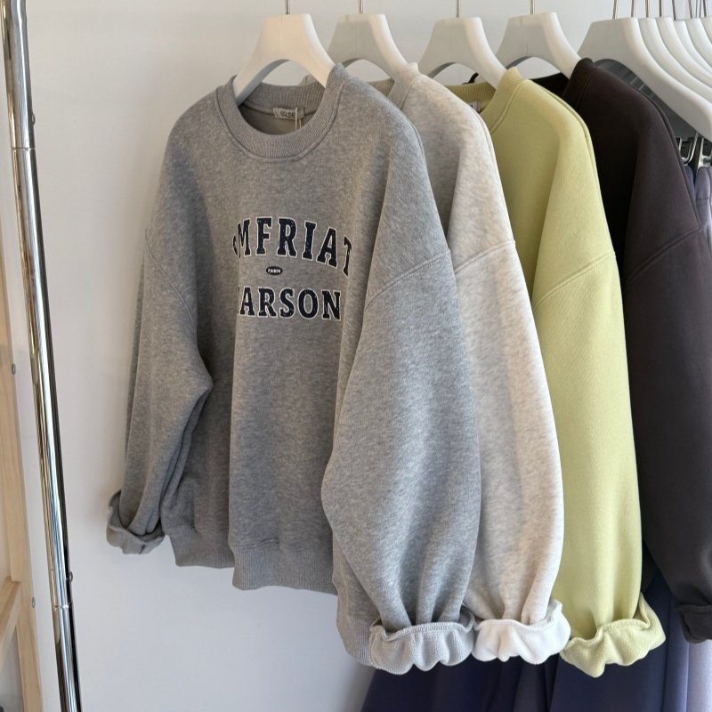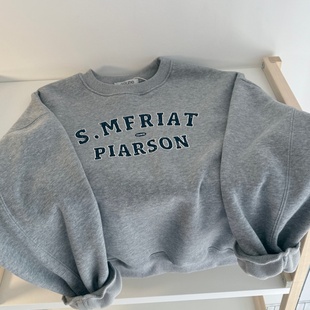摇粒绒上衣 女士休闲短款 加绒 撞色印花字母简约百搭韩系圆领卫衣