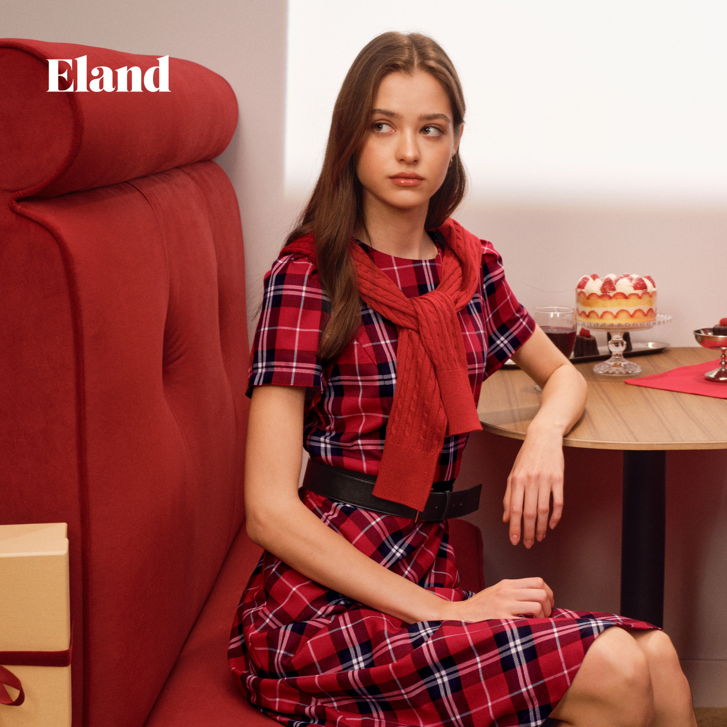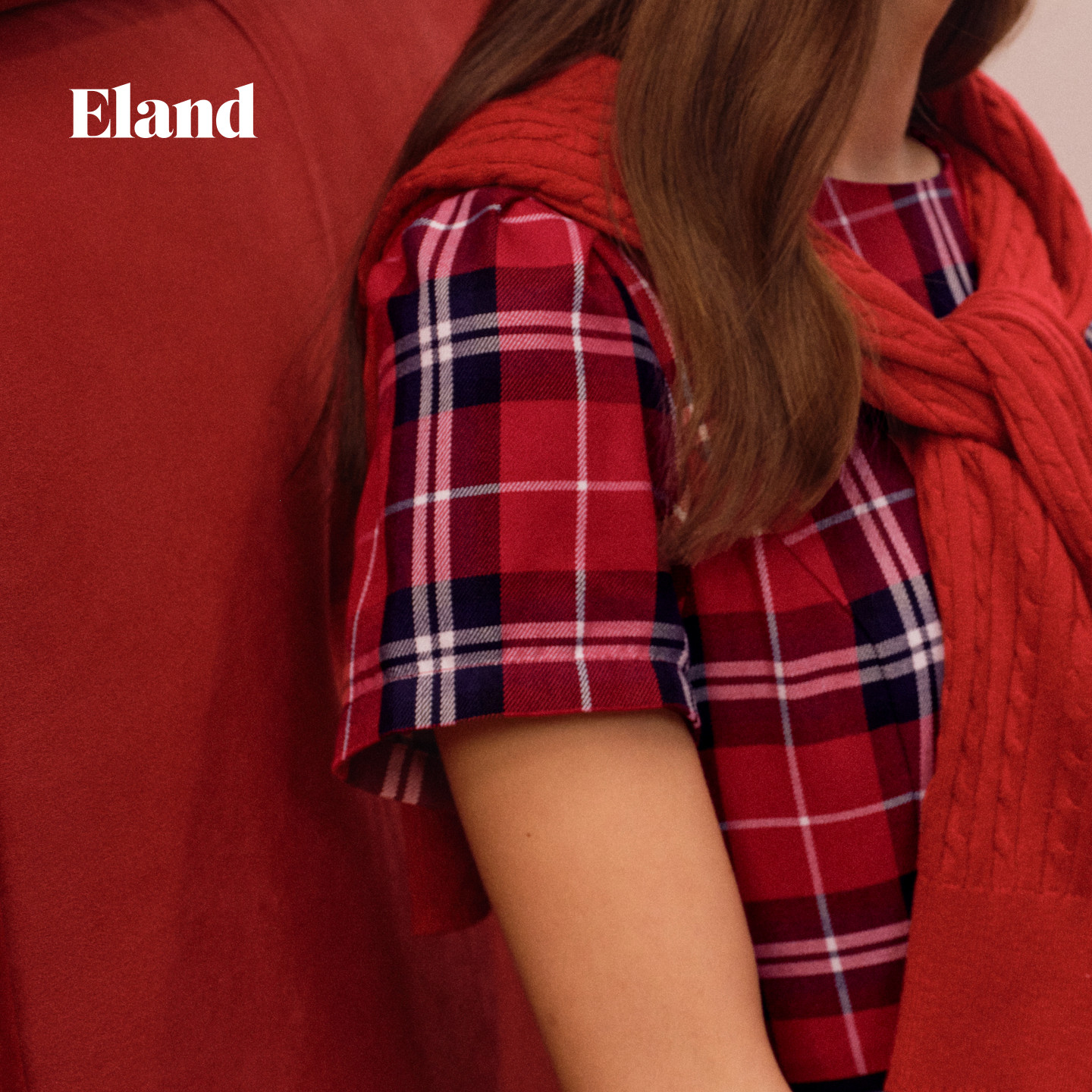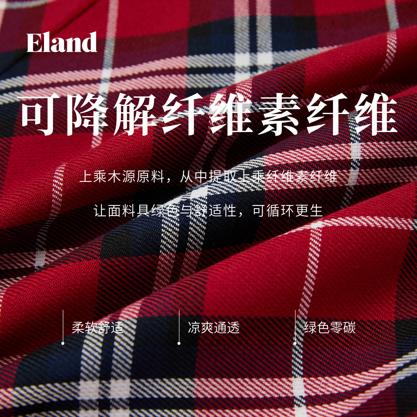 格纹裙2026春新款 Eland衣恋早春漂亮连衣裙女收腰短袖 优可丝