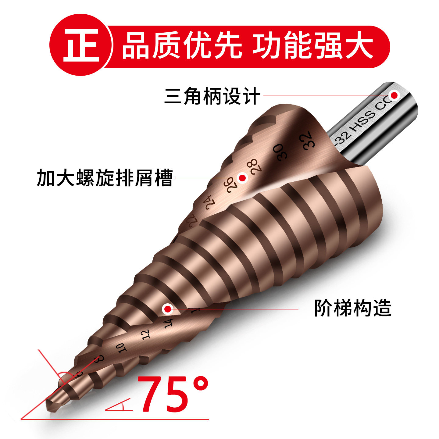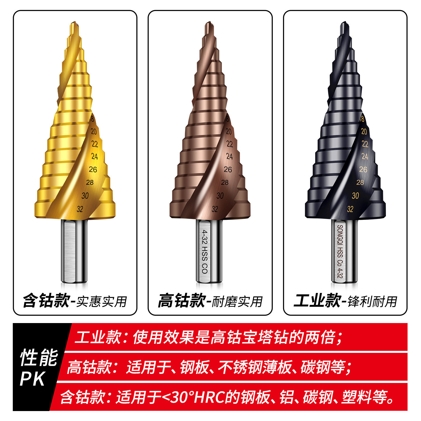 松崎宝塔钻头高硬度含钴开孔器不锈钢304专用打孔阶梯型扩孔神器