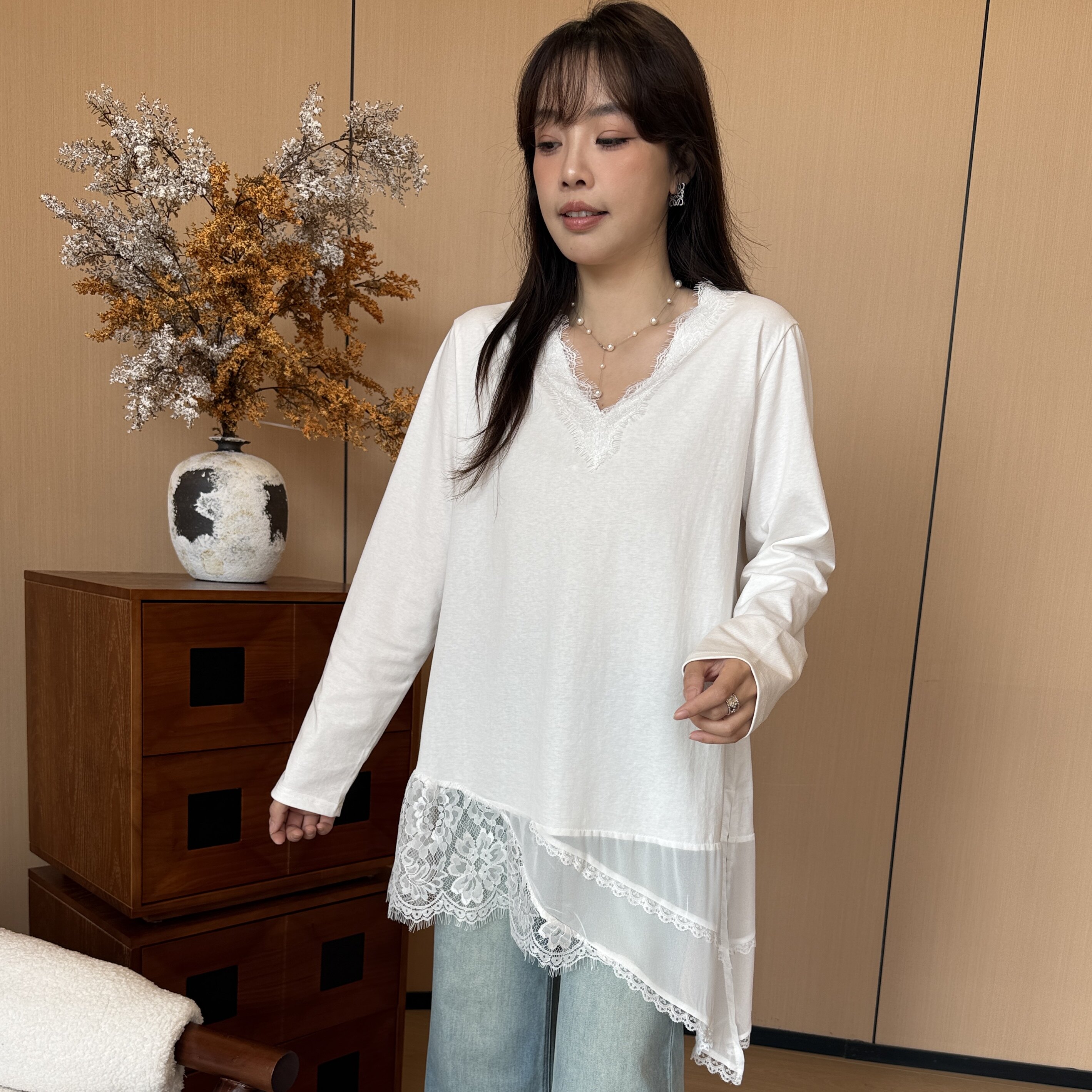 V领蕾丝拼接不规则背心叠穿T恤 万能叠搭神器 26002 宝藏 二姐