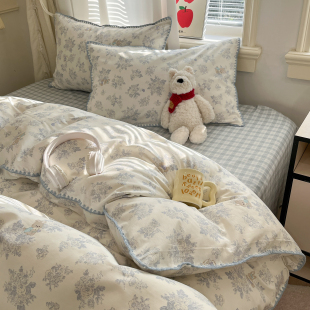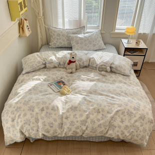 韩系贝壳锁边全棉四件套2026新款 纯棉床单被套学生宿舍床上三件套