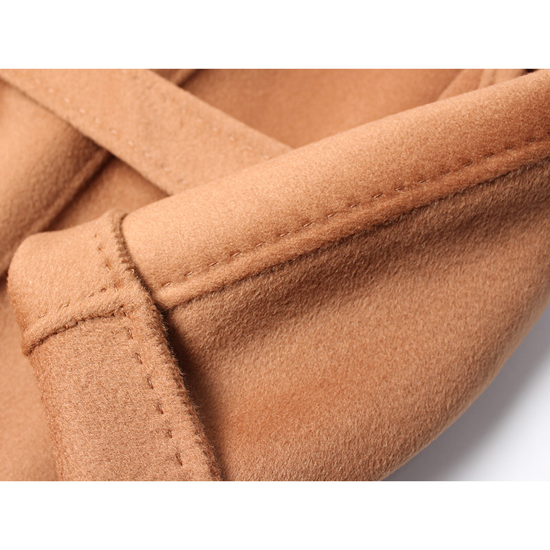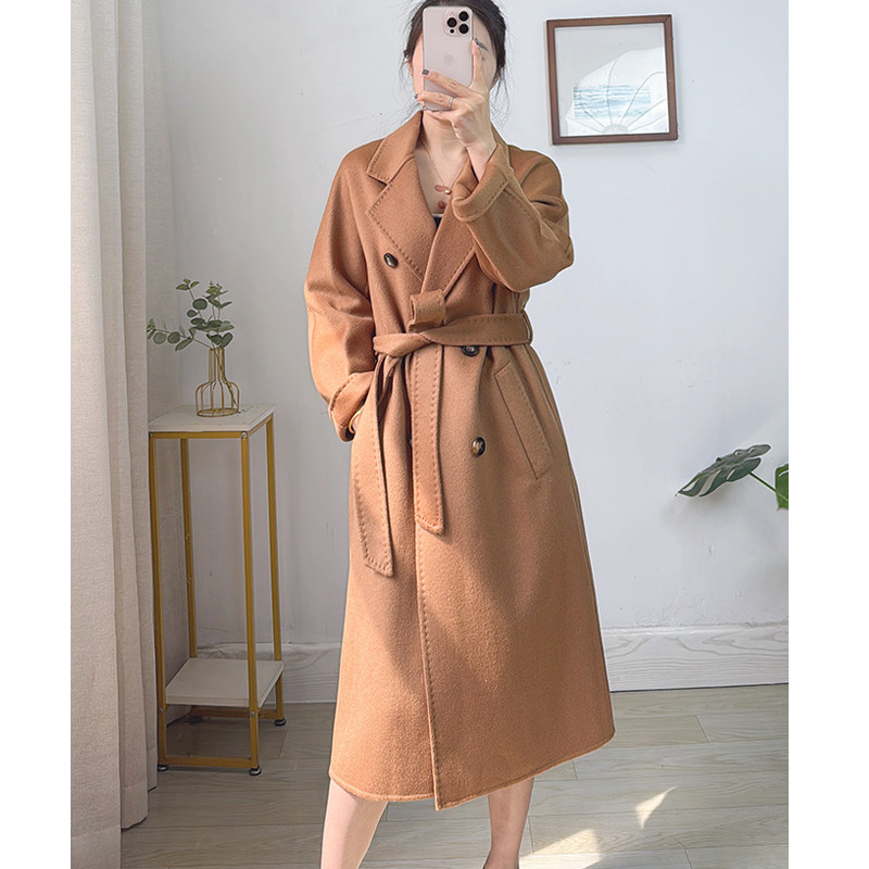中长款 驼色双面羊绒高端羊毛大衣女 手工缝线 气质绑带外套 经典