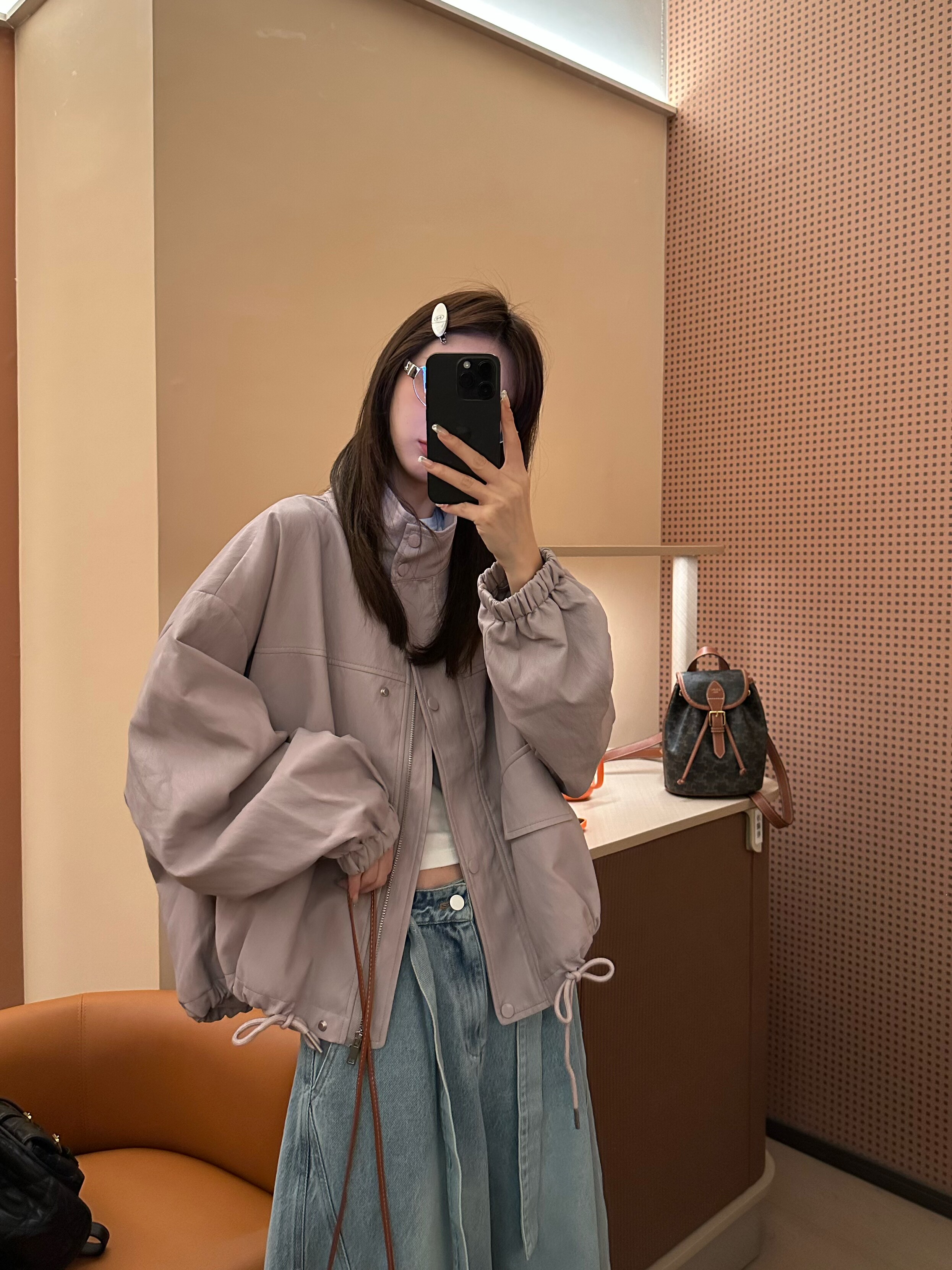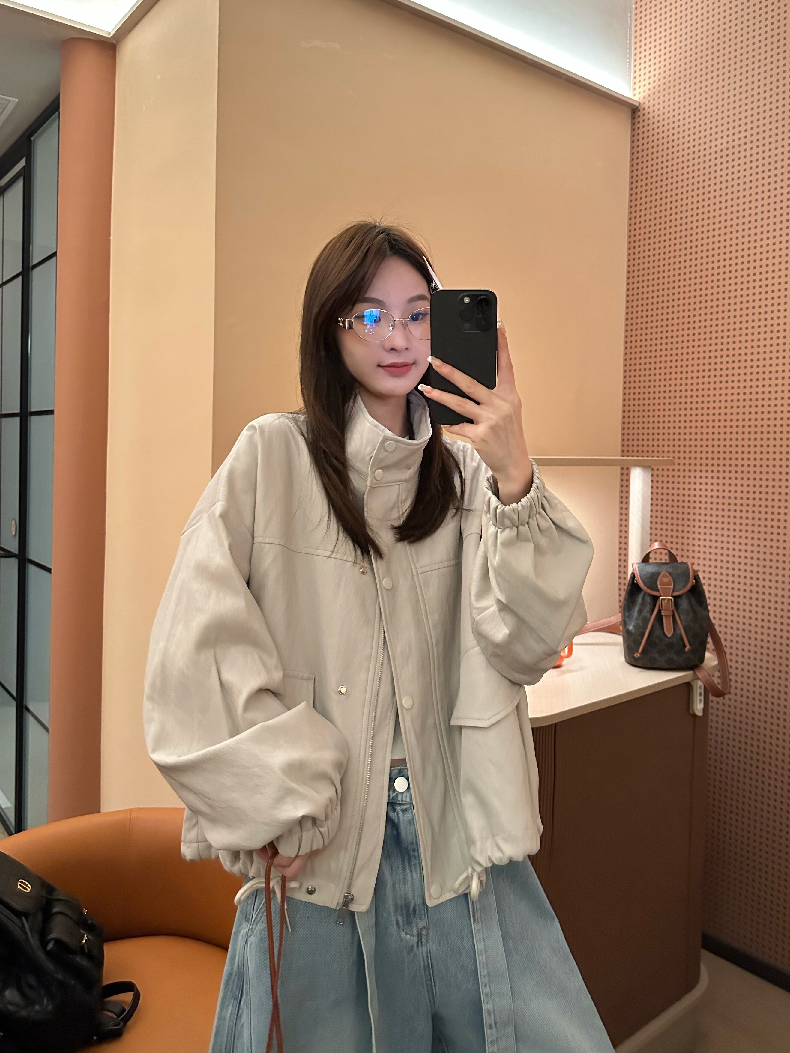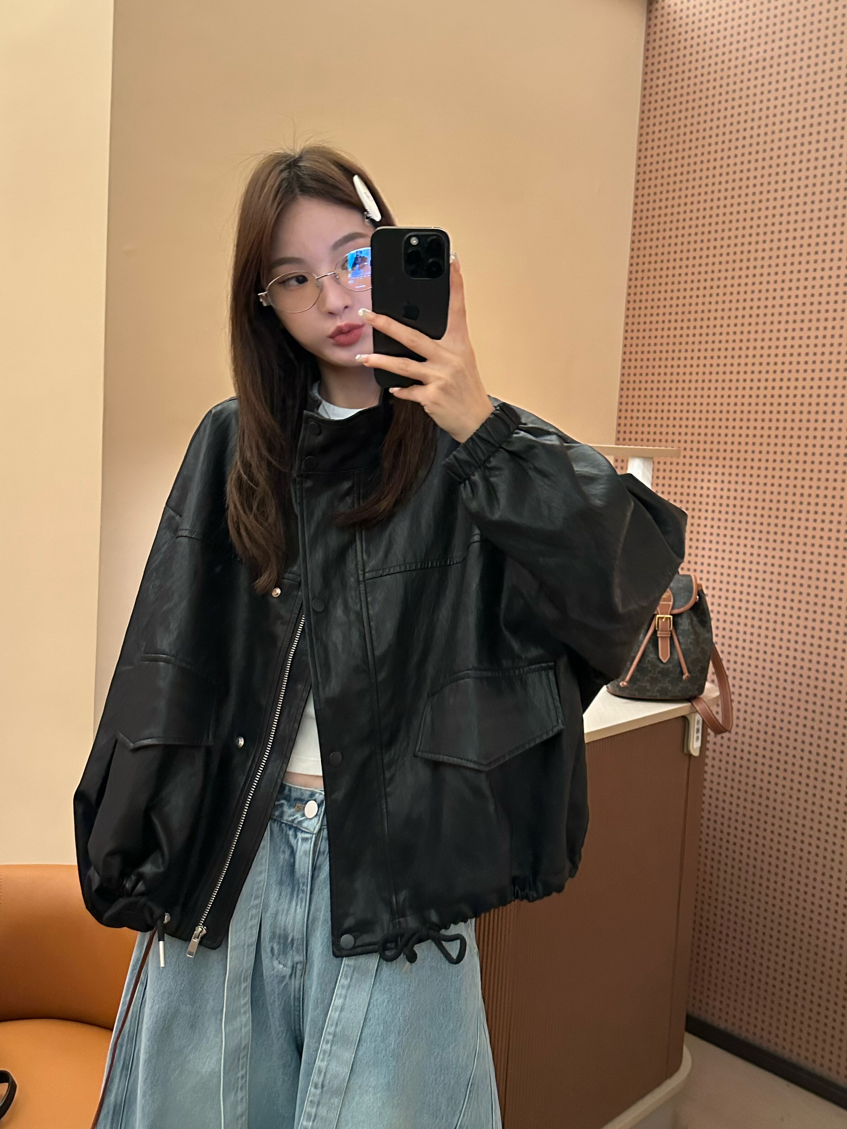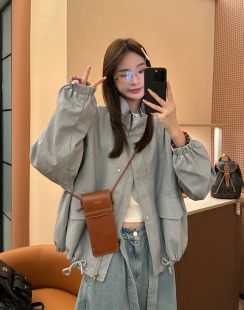 上衣皮外套女 气质百搭宽松显瘦抽绳设计感立领工装 26008春季 韩版