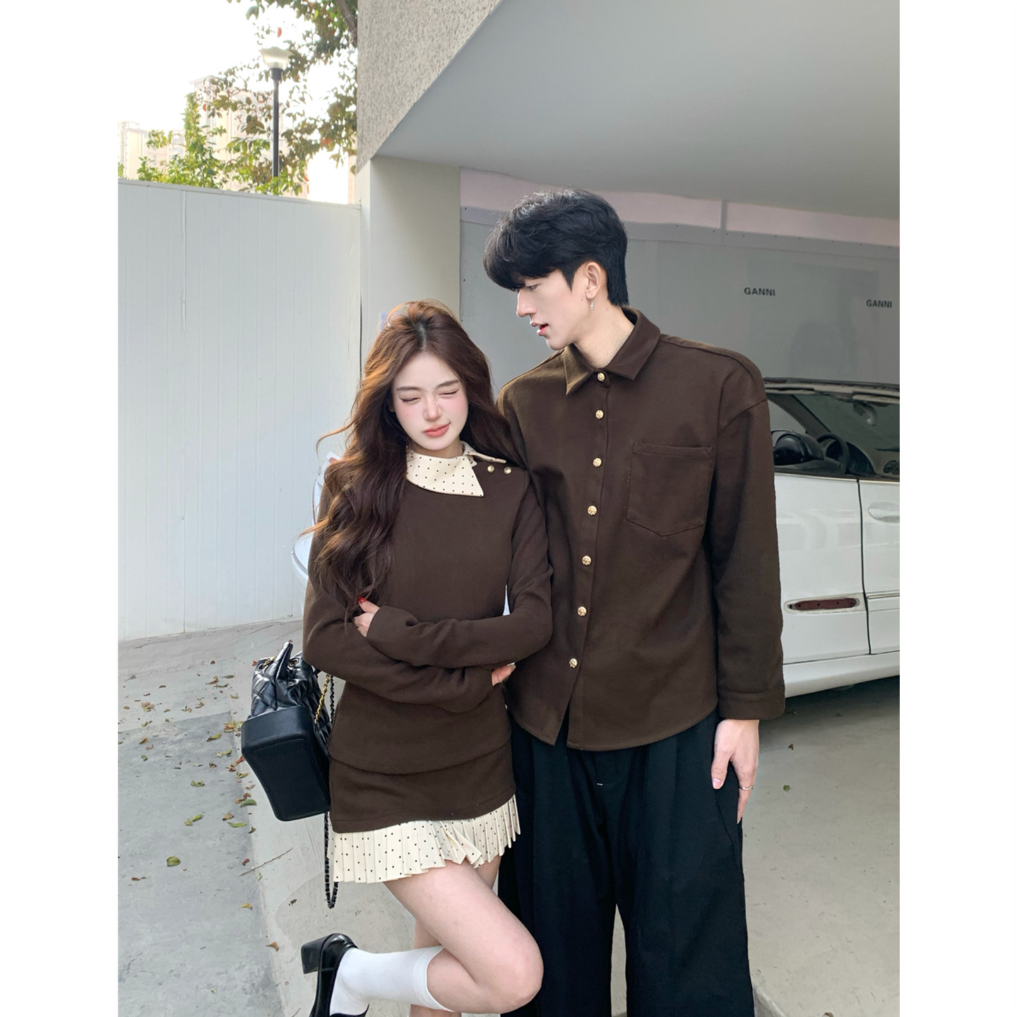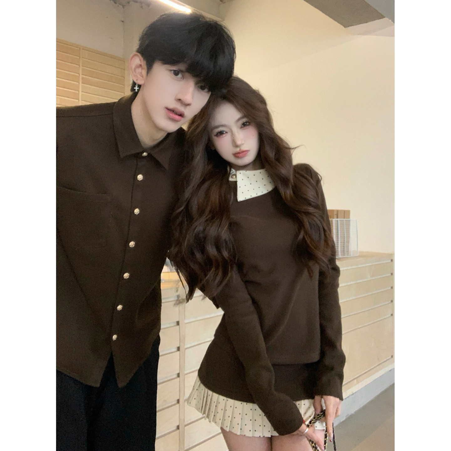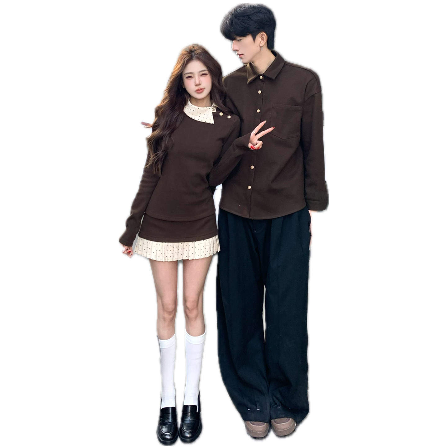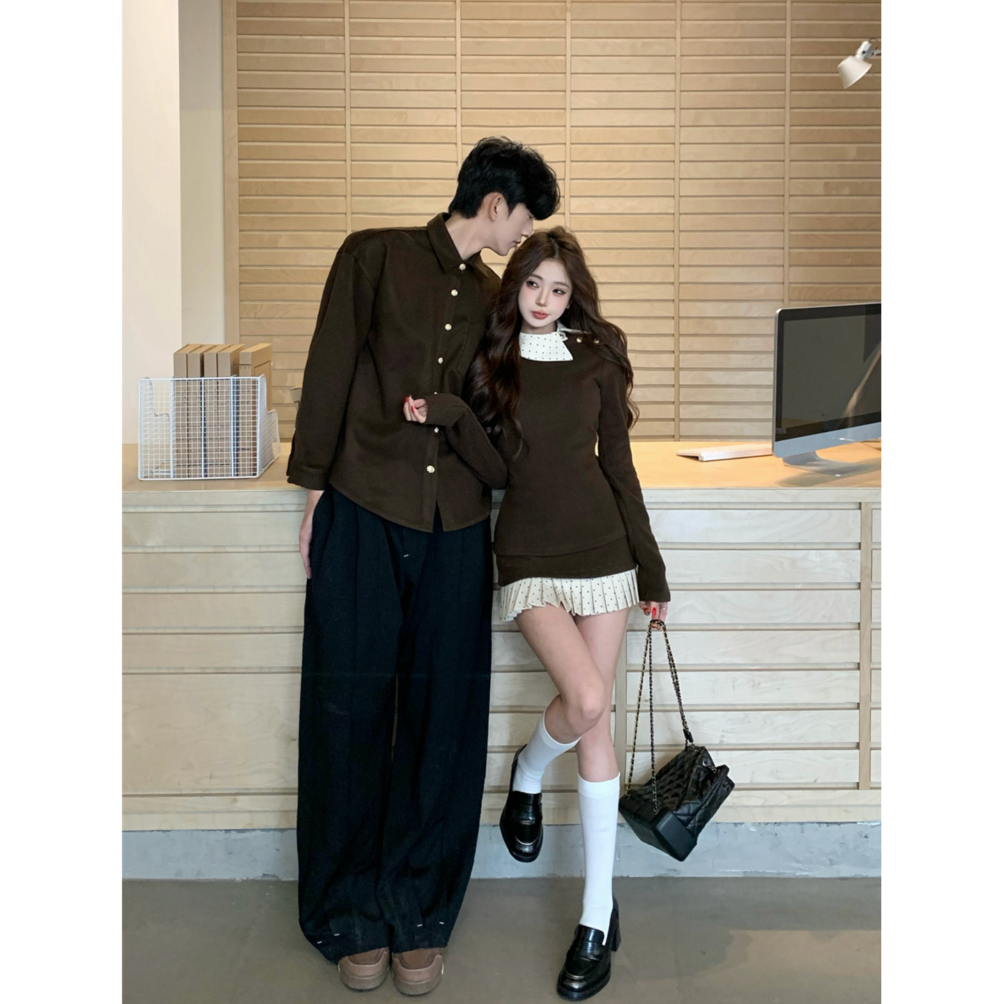 连衣裙两件套法式 衬衫 一衣一裙ins潮牌 春秋韩版 小众设计感情侣装