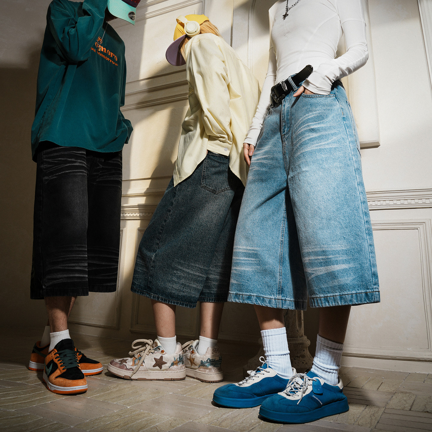 潮流复古牛仔七分裤 休闲短裤 男2026春季 情侣款 女 新款 lemanism美式