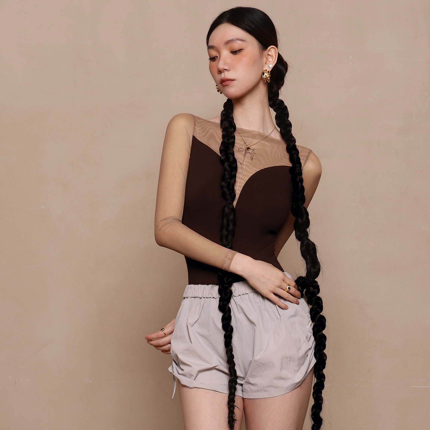 danzbaby芭蕾舞服成人形体服女练功服定位印花拼接练功体服B395