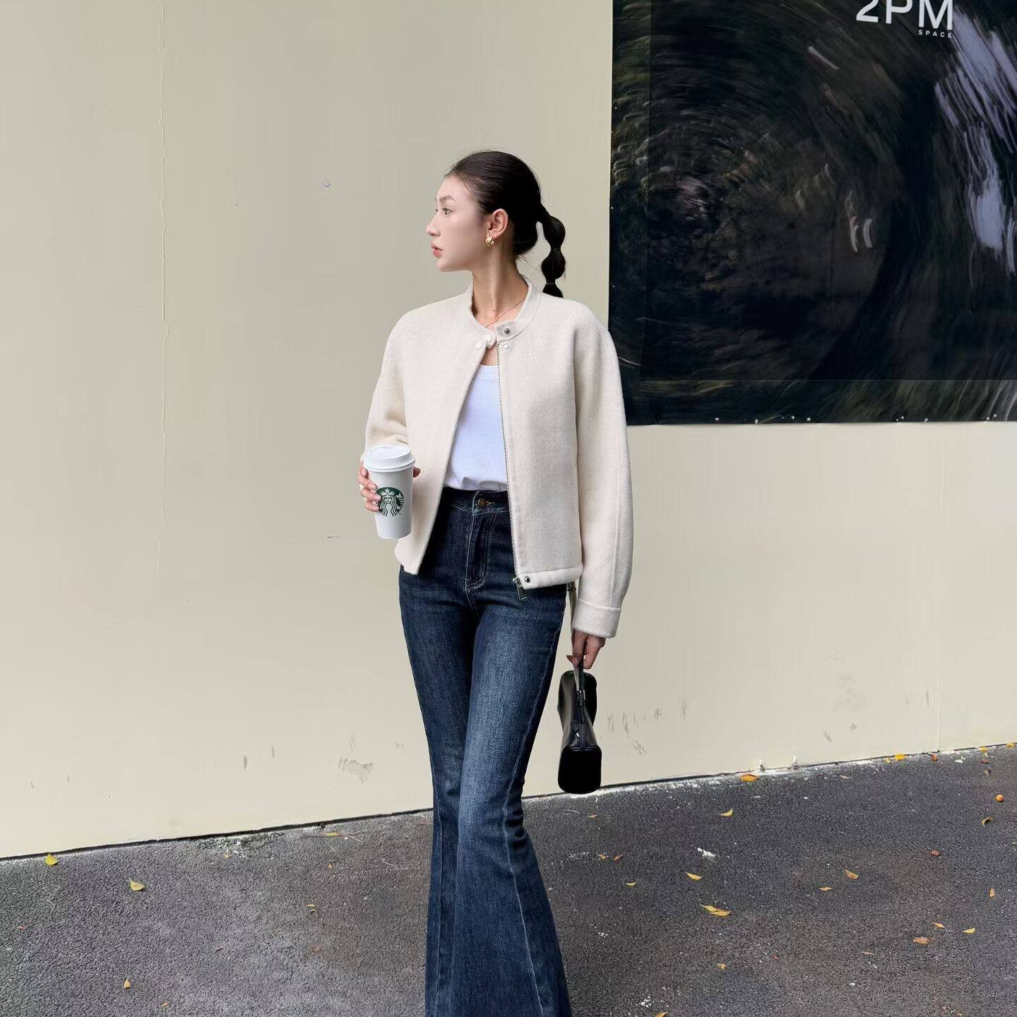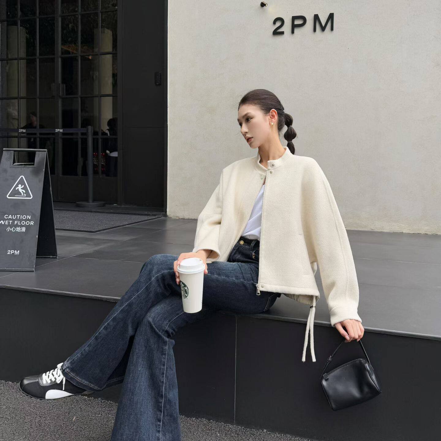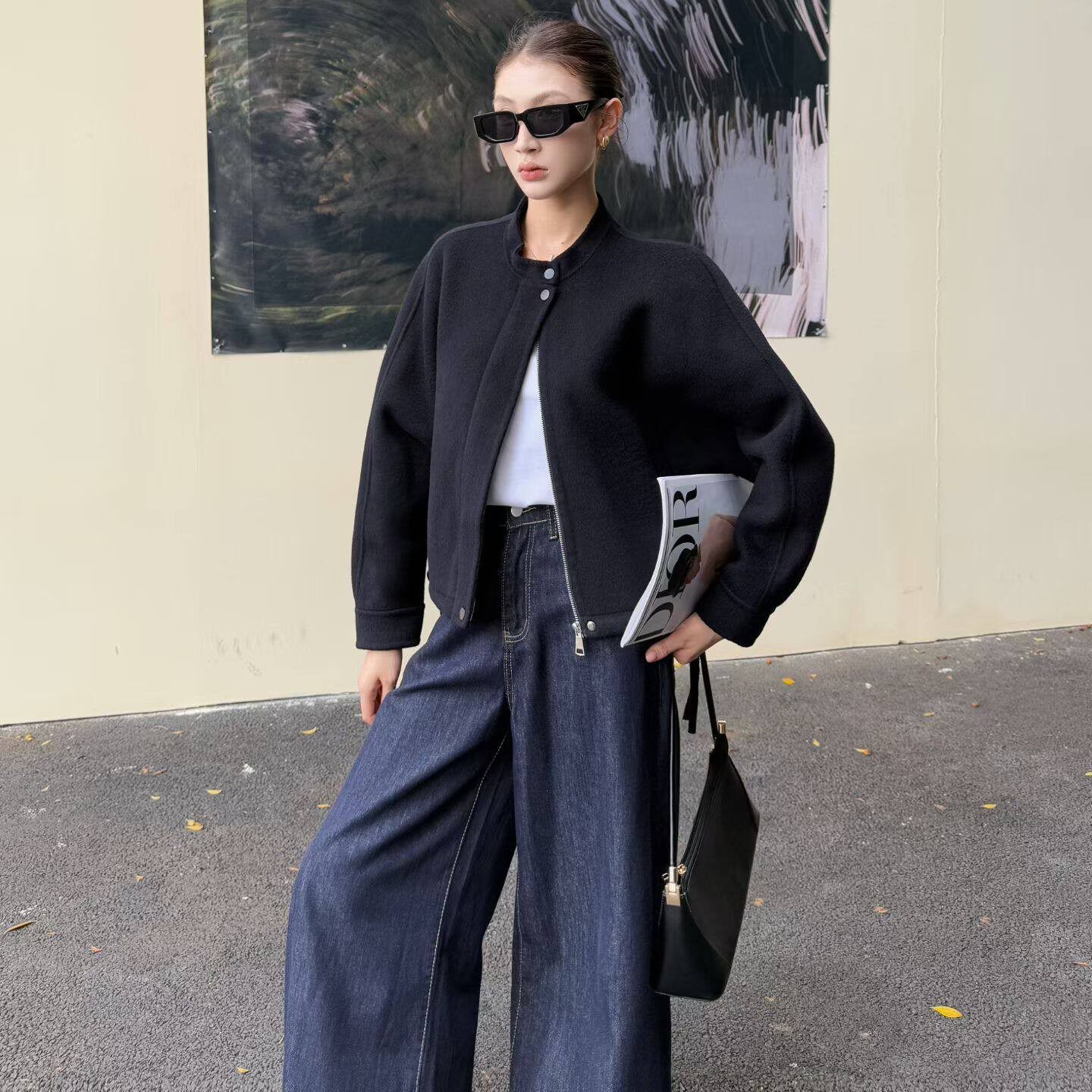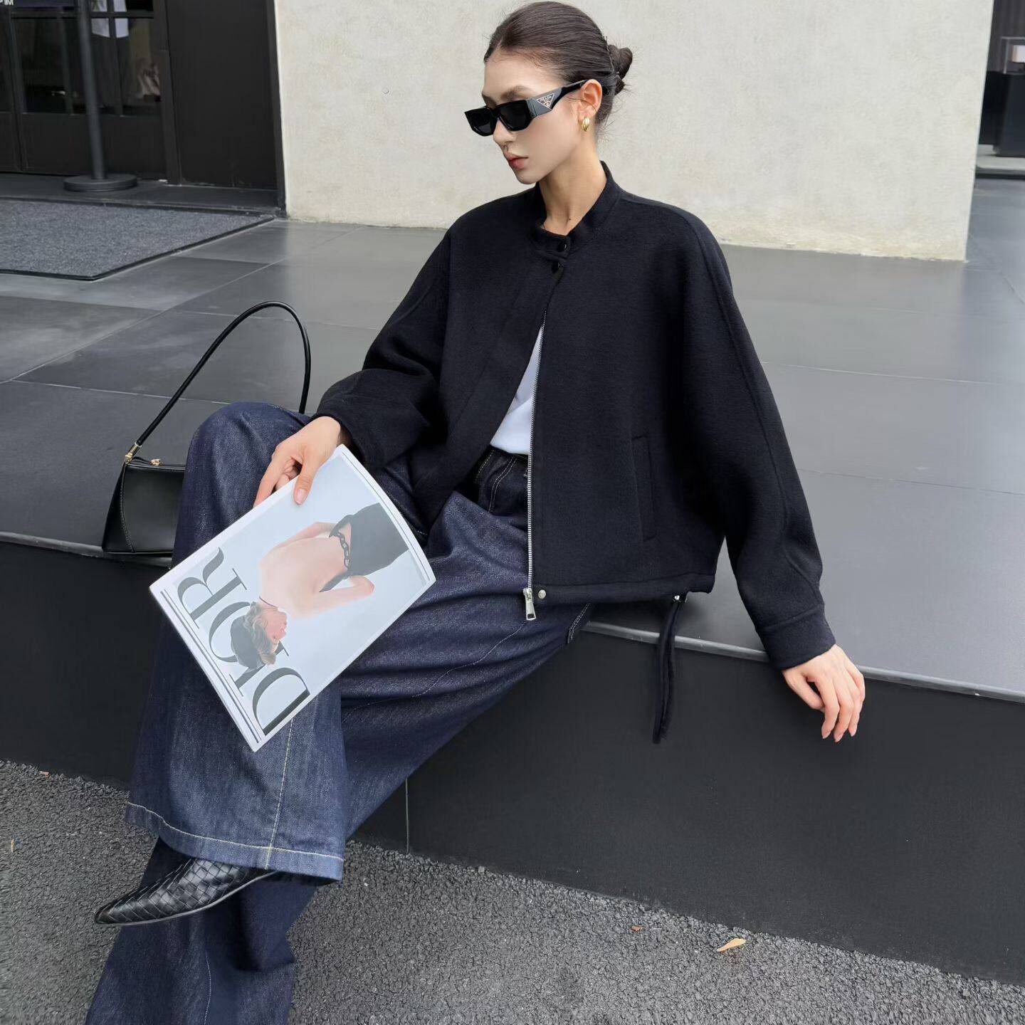 休闲小众简约 松弛感拉链圆领外套显瘦时尚 山羊绒 2026新春季