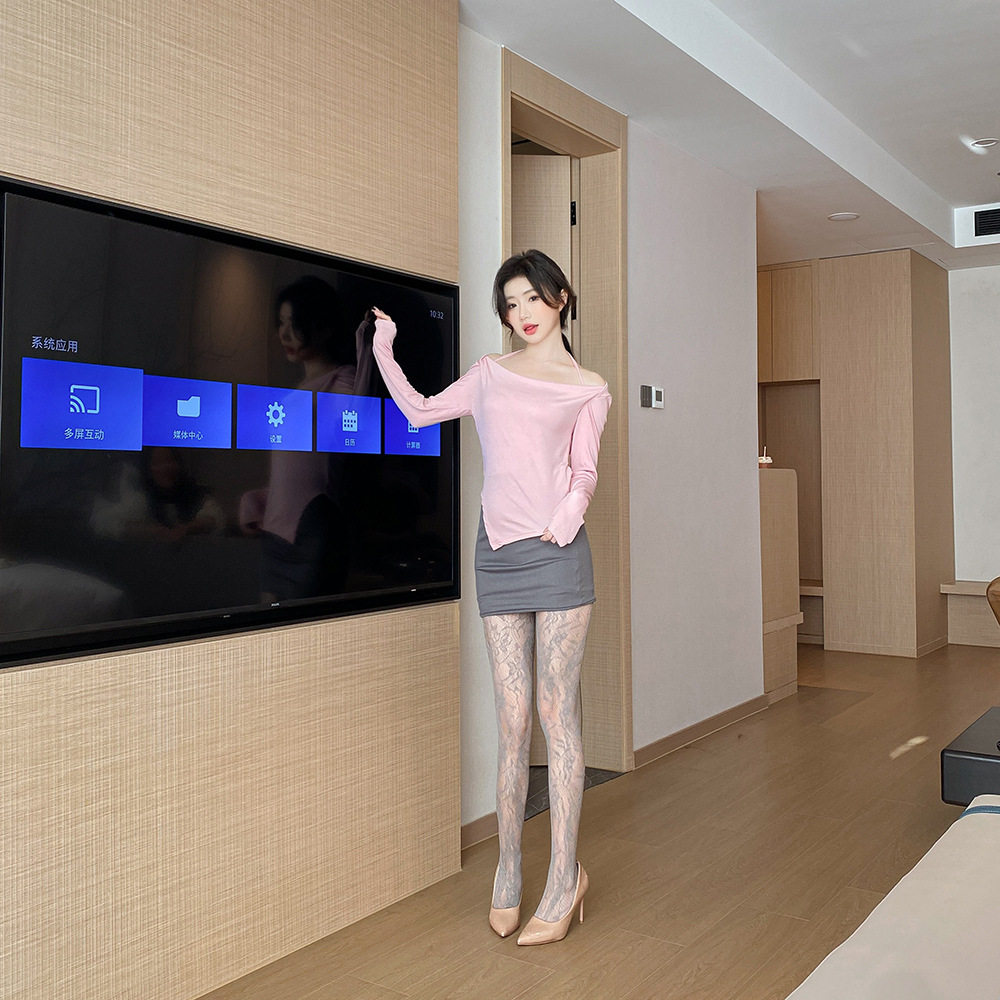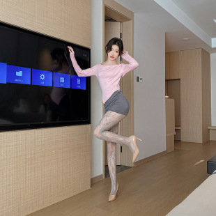 黑丝袜网红薄款 镂空提花袜子灰色花朵图案打底袜JK网袜丝袜3178
