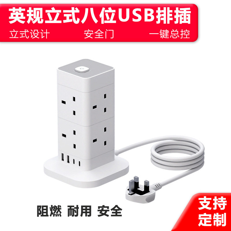 立式 排插延长线英标排插插座 英规多层带独立开关带UBS排插塔式