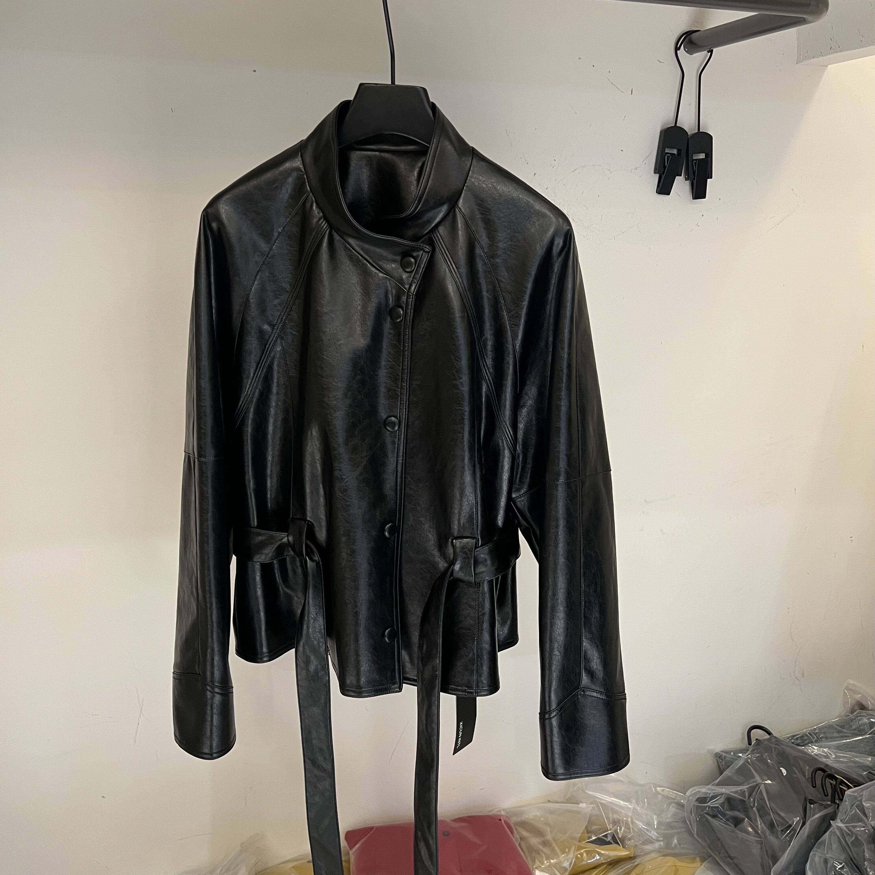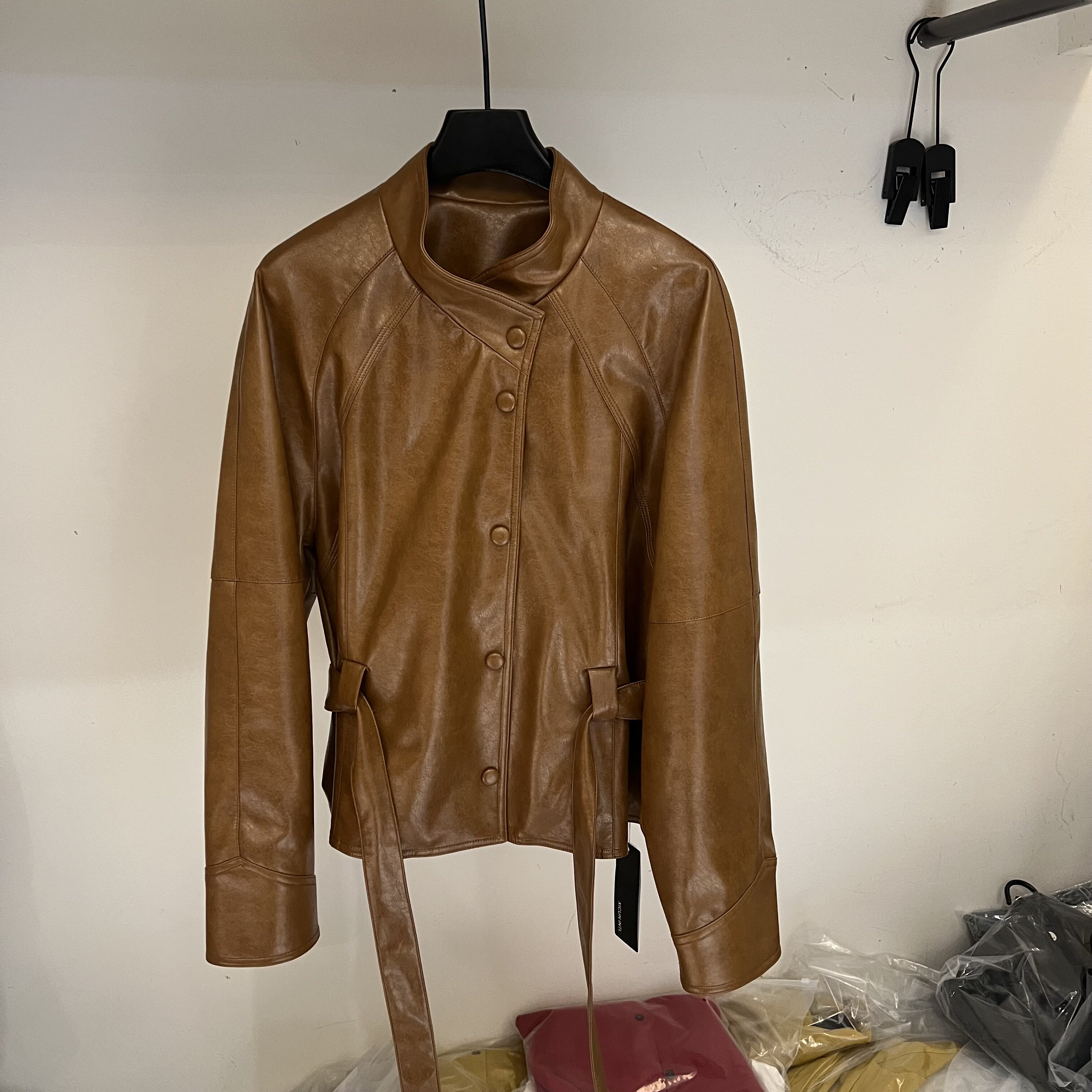 立领PU皮衣外套女系带收腰显瘦蛋白皮夹克潮 复古时尚 2026春季 新款