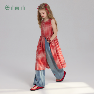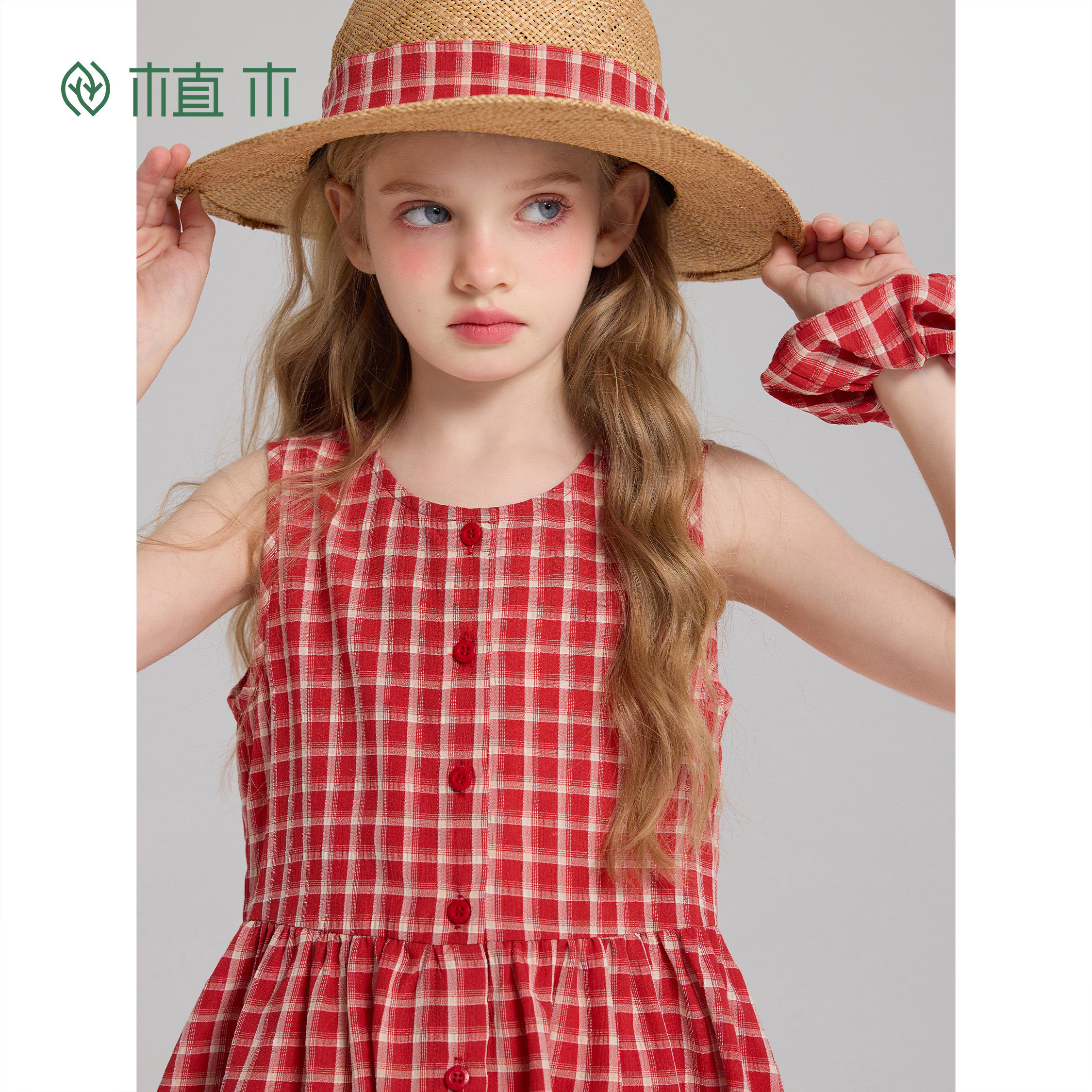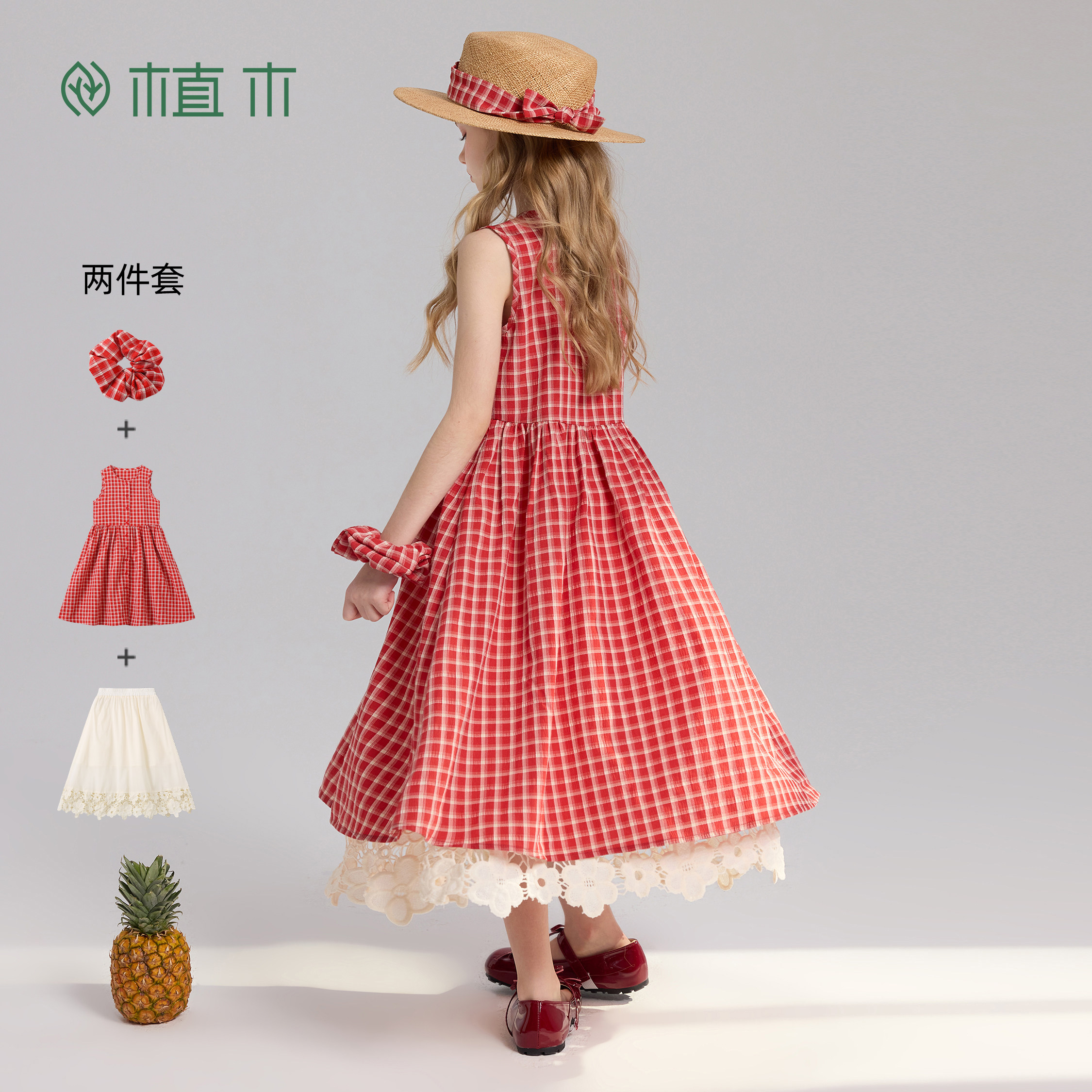 女童连衣裙儿童半裙青少年夏季 植木 2件套 格纹无袖 新 度假序章
